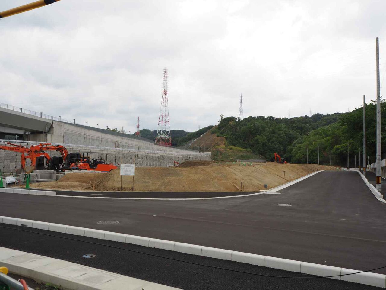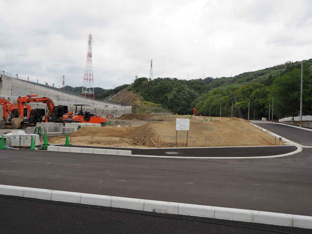 現地へのアクセス道路は公園墓地と緑水会病院に入る道のほか、今後新名神の檜尾川にかかる演習橋の北側にある山水橋の付近(写真上)から新たにアクセス道路ができるようです。まず土地の整備完成予定が2022年末のようです。おそらく並行して事業者の誘致がされるようですが、今後誘致は製造業やスーパーなどを検討されているようです。今後進展がわかり次第更新します。