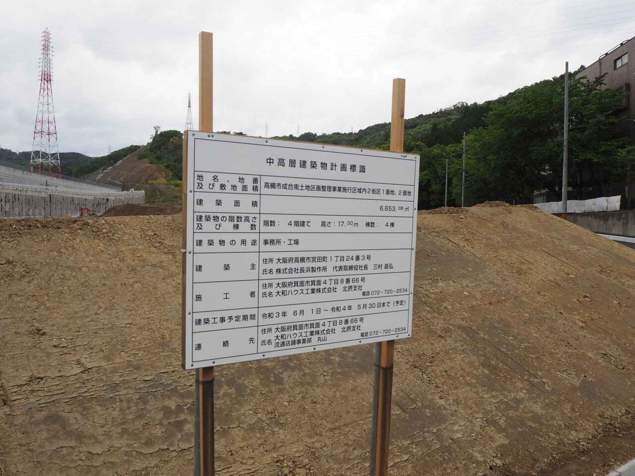 成合南の町の高槻インター近くの造成工事地区ですが、高槻宮田町にある会社で長浜製作所の工場と事務所ができるようです。サイトを拝見すると長浜製作所さんは宮田町の関西スーパーの通りの北側にあって、バランシングマシンという機械の設計製造販売をされているグローバル企業のようです。