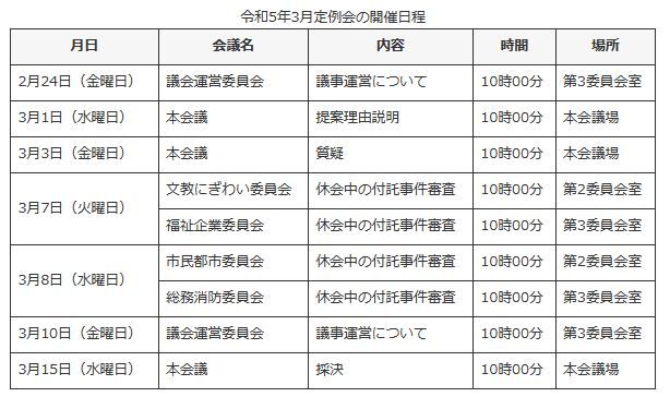 高槻市議会3月議会日程はコチラ↓