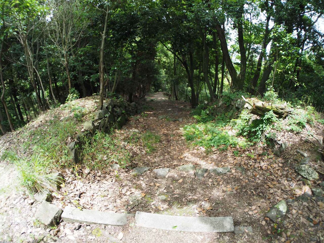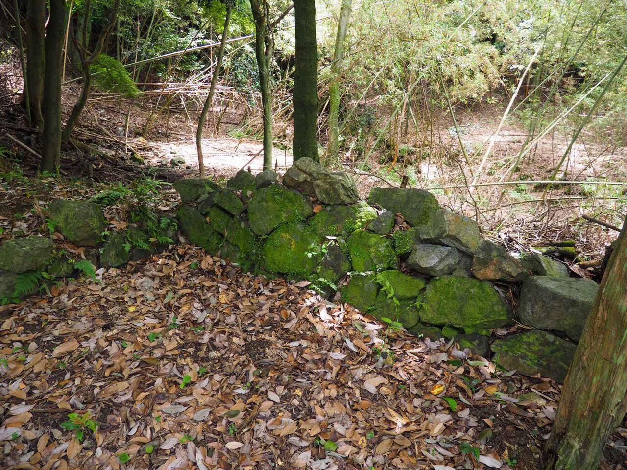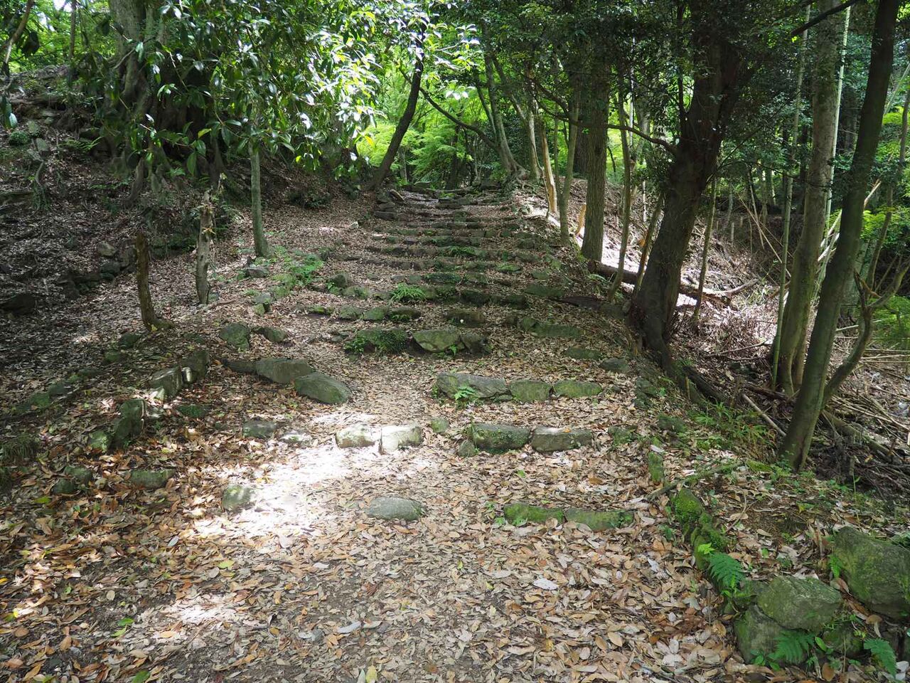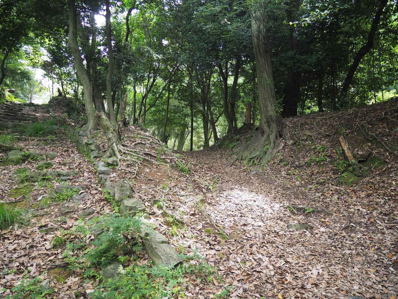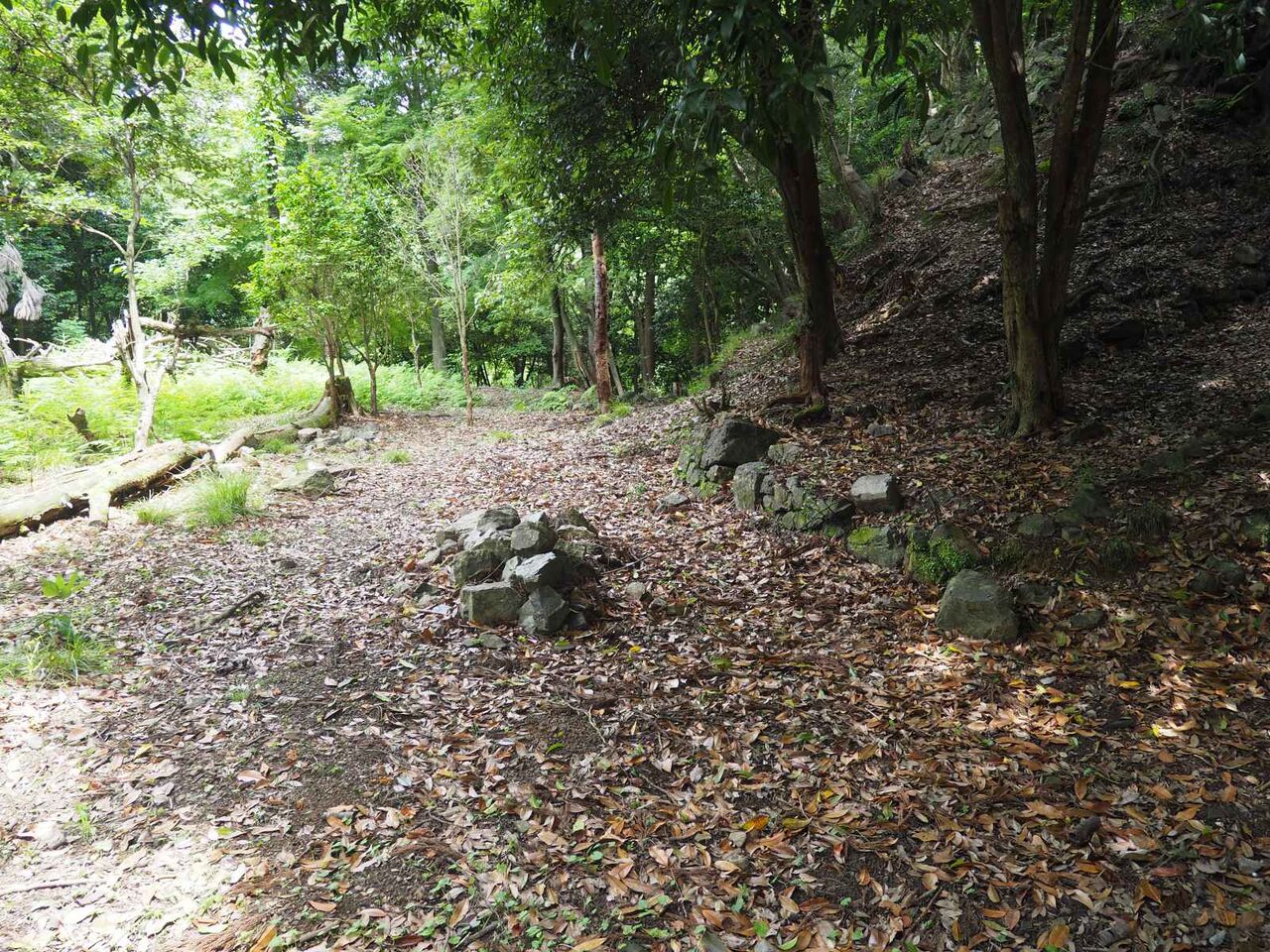 右手にも石垣が残っています。