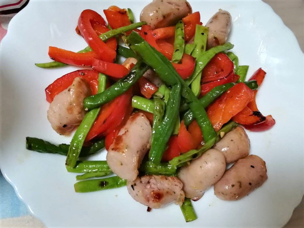 今回も本当に簡単なんですが、ササゲとソーセージ、パプリカの炒めものでした!食感もあってとてもおいしくいただきました!