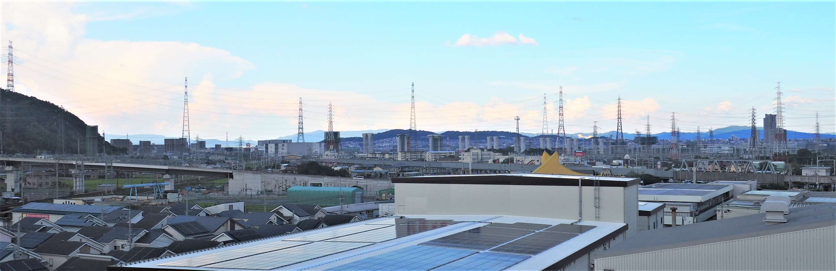 新名神淀川橋工事のようすです。上牧付近から梶原に向かう橋脚の多くの囲いがなくなってきました。(2023年8月)っ現在は淀川堤防の2本と、新幹線から北の橋脚がメインに工事をされています。