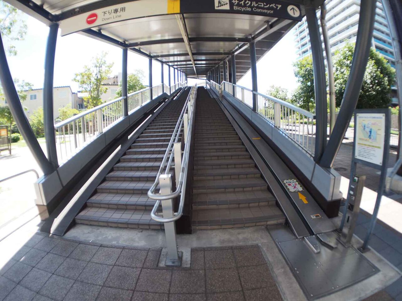 高槻の階段の段数を調べてみる投稿です。その22としまして、前回の弁天跨線橋の階段です。(その2)北側に2つ南側に1つあるんですが、前回は北側の急な方の階段を投稿しました。今回は傾斜の緩い側と、南側です。