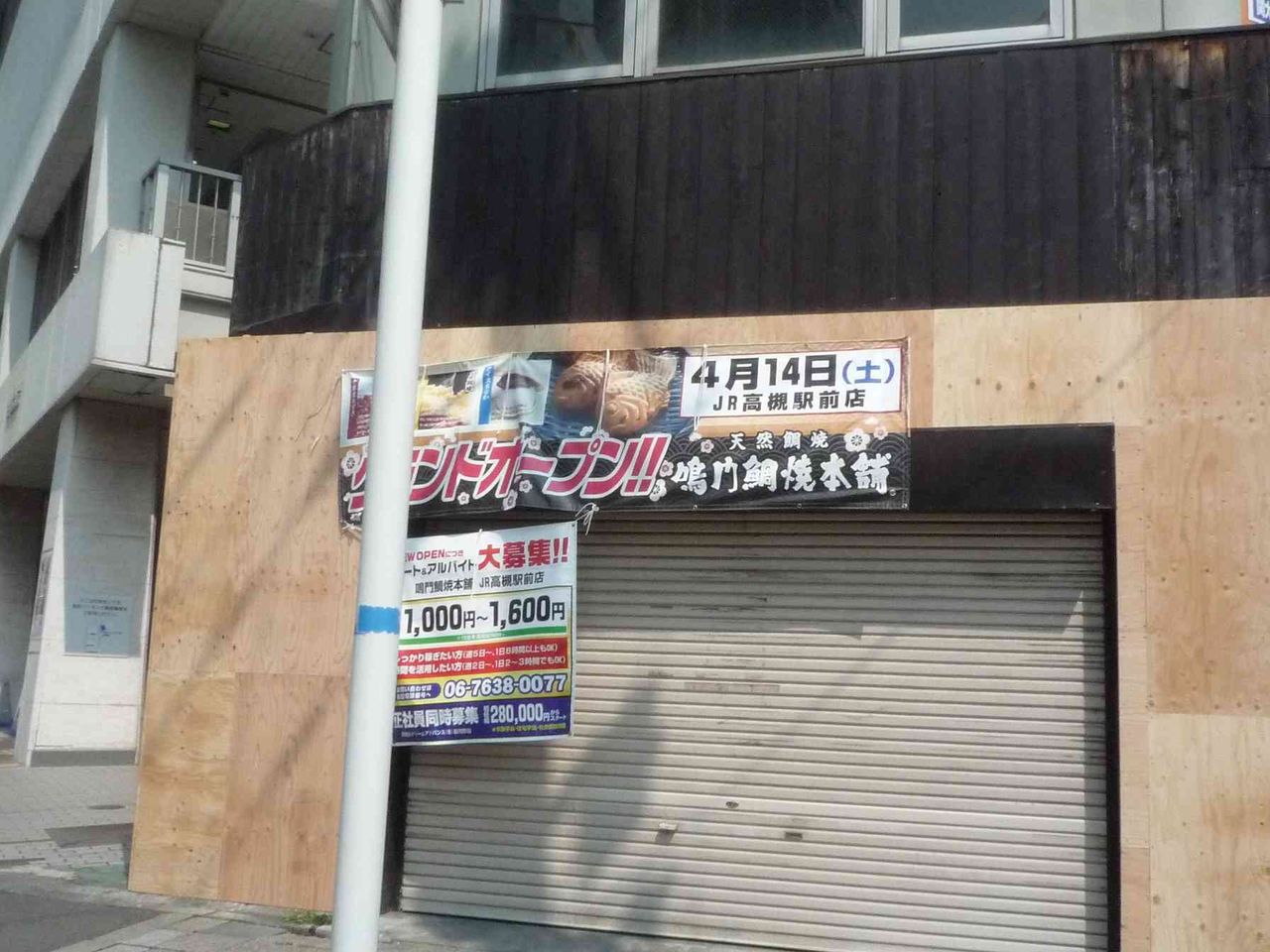 鳴門鯛焼本舗のJR高槻駅前店が、4月14日(土)に西武と駅の間、丹波屋あとの建物に開店するみたいです。