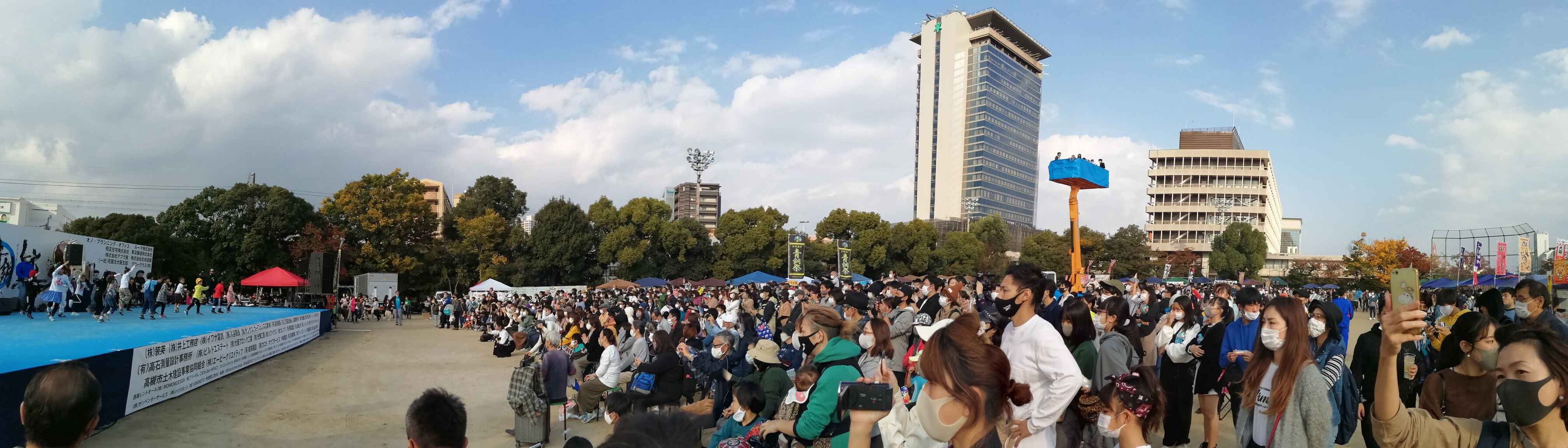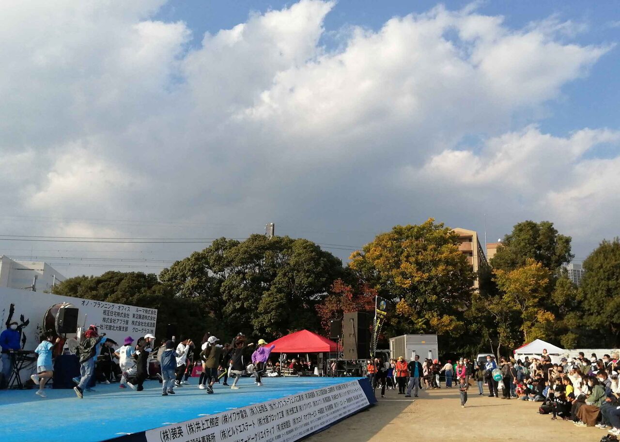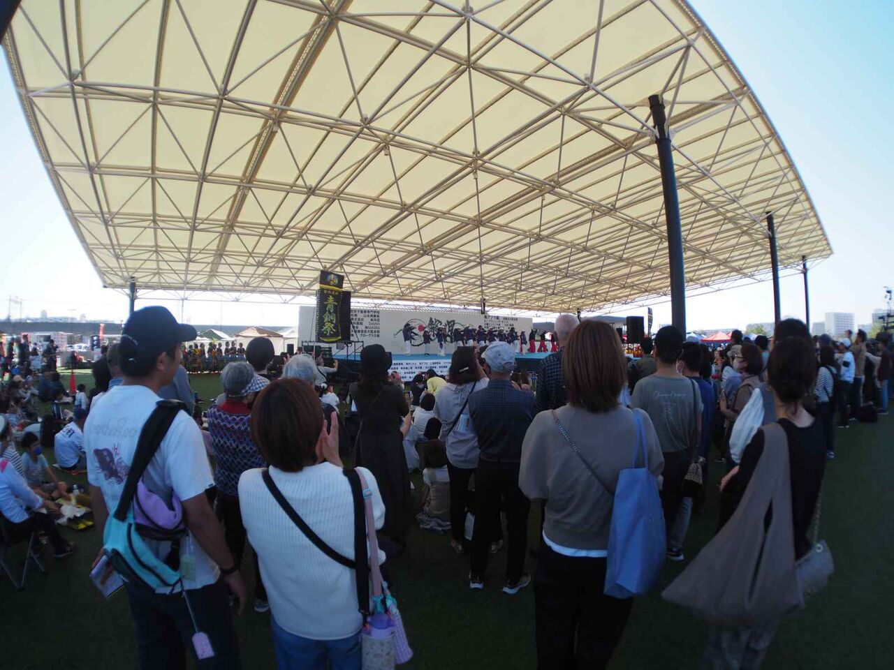 ステージのパフォーマンスと周辺のお店や、そのほかのイベントや、集まりのようすです。