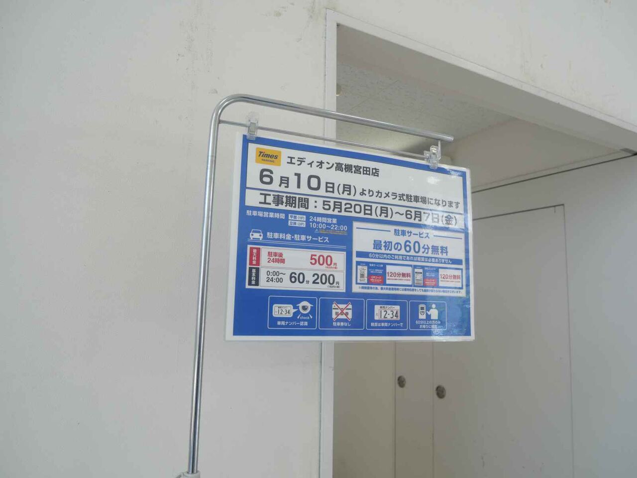 エディオン高槻宮田町店ですが、駐車場が2024年6月10日(月)からカメラ形式になるようです。