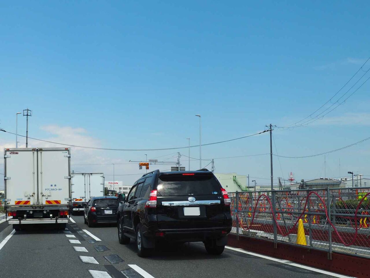 安威川沿いに通ると、工事のクレーンがたくさん見えてきます。