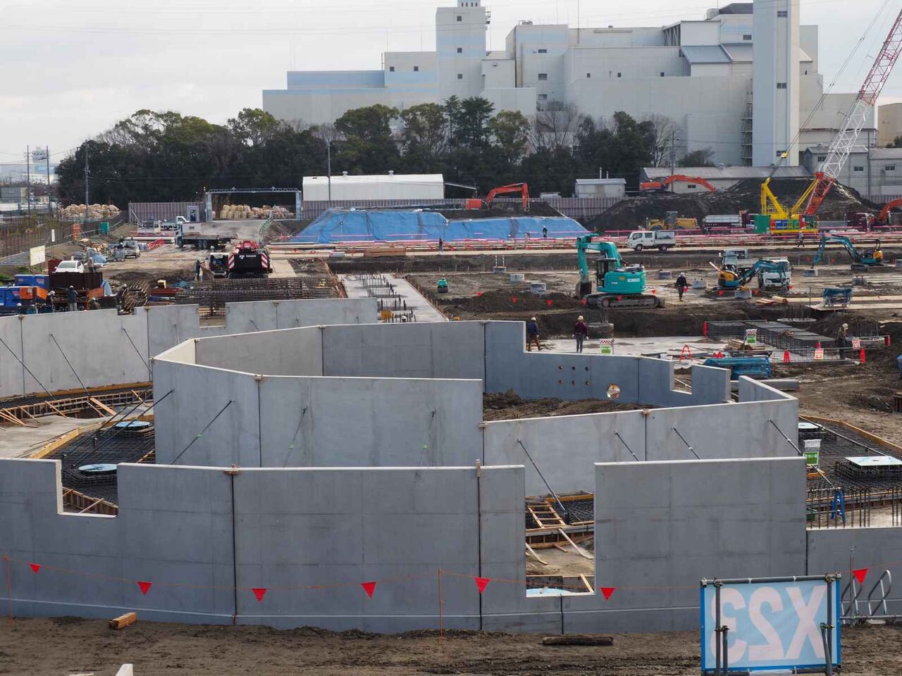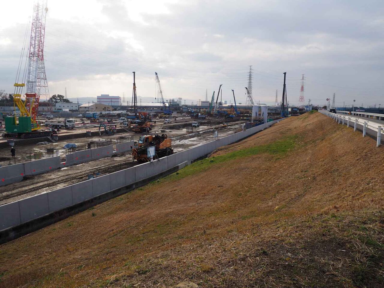 この右手にも、基礎部分を造っている場所があります。商業施設の建設状況はちょっと見ることができませんでしたが、この付近の物流倉庫の建設と合わせて次回ようすを更新していきたいと思います。