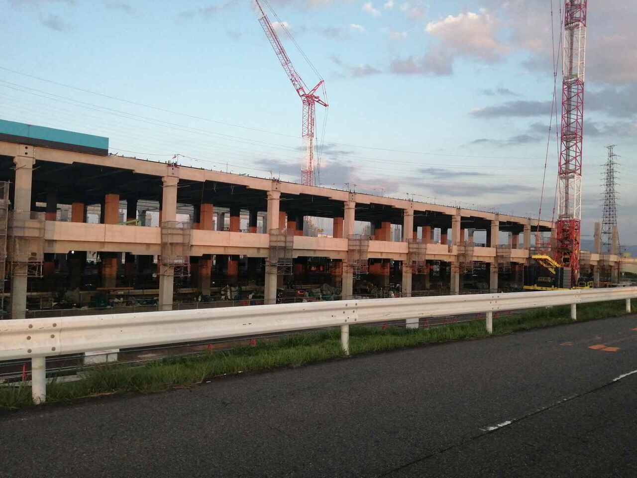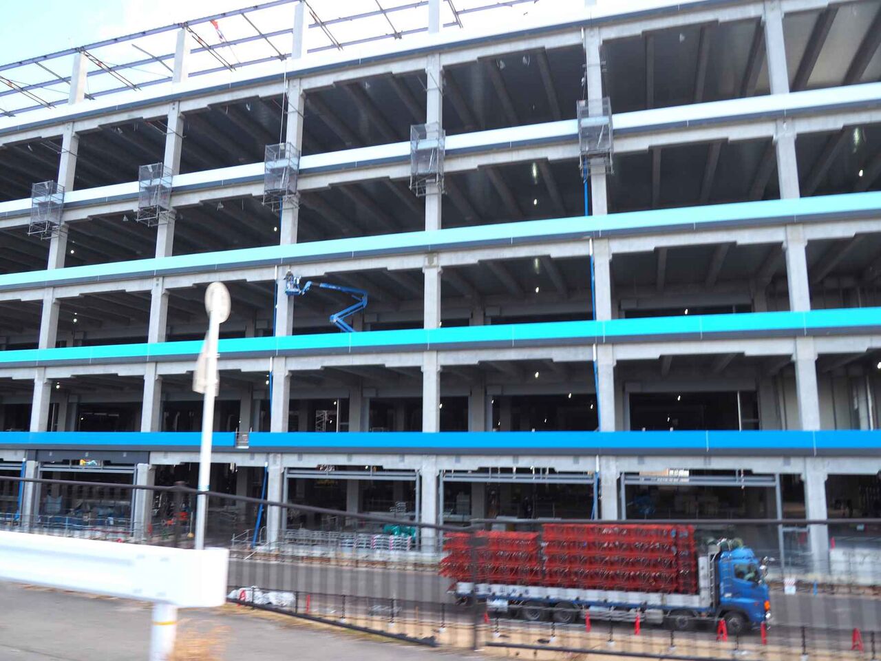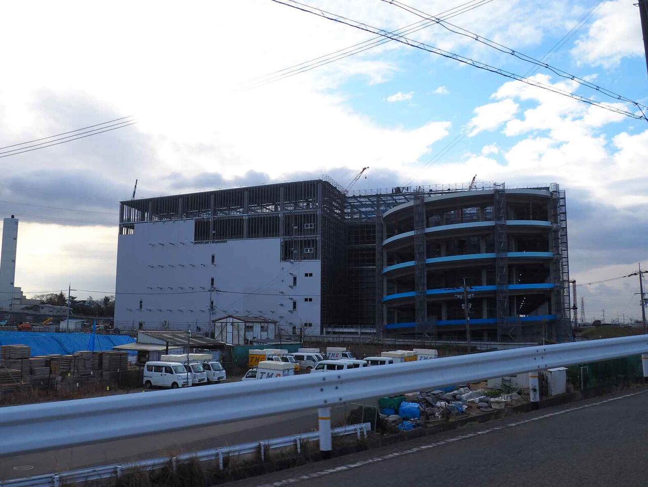 物流倉庫ですが、前回かなり建物はできてきてましたが、その後どうなったでしょうか?左手の倉庫本体も外観はできたようです。
