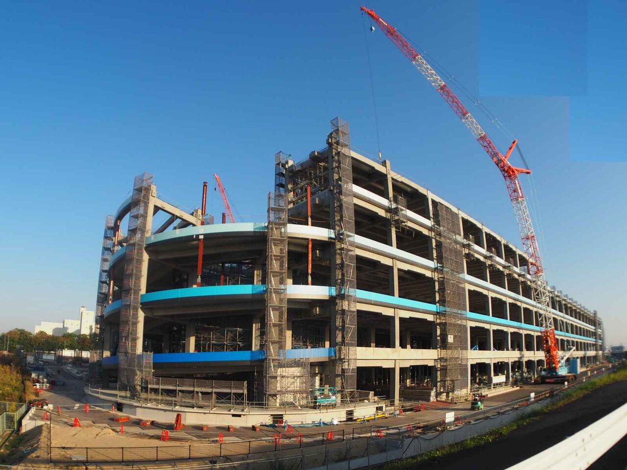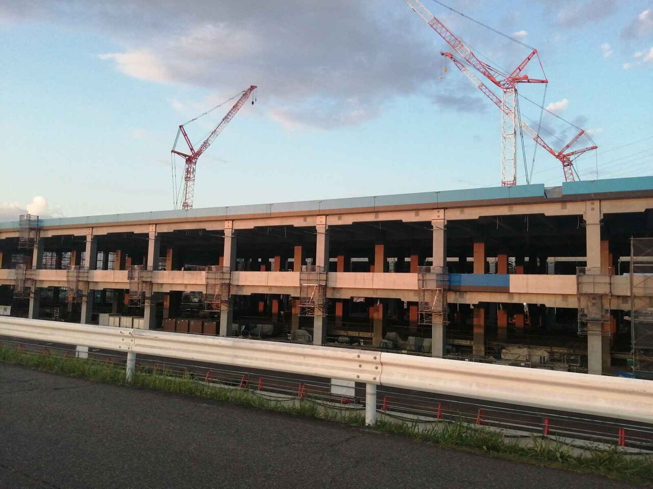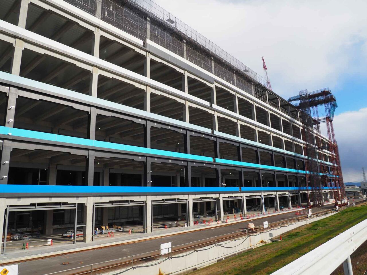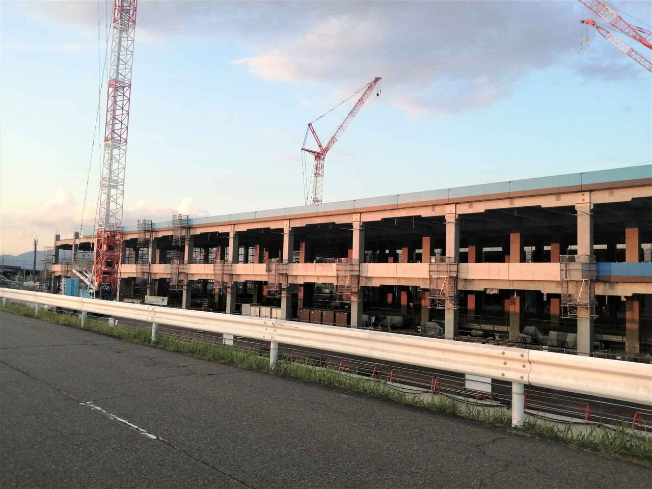 物流倉庫ですが、前回かなり建物はできてきてましたが、その後どうなったでしょうか?左手の倉庫本体も外観はできたようです。