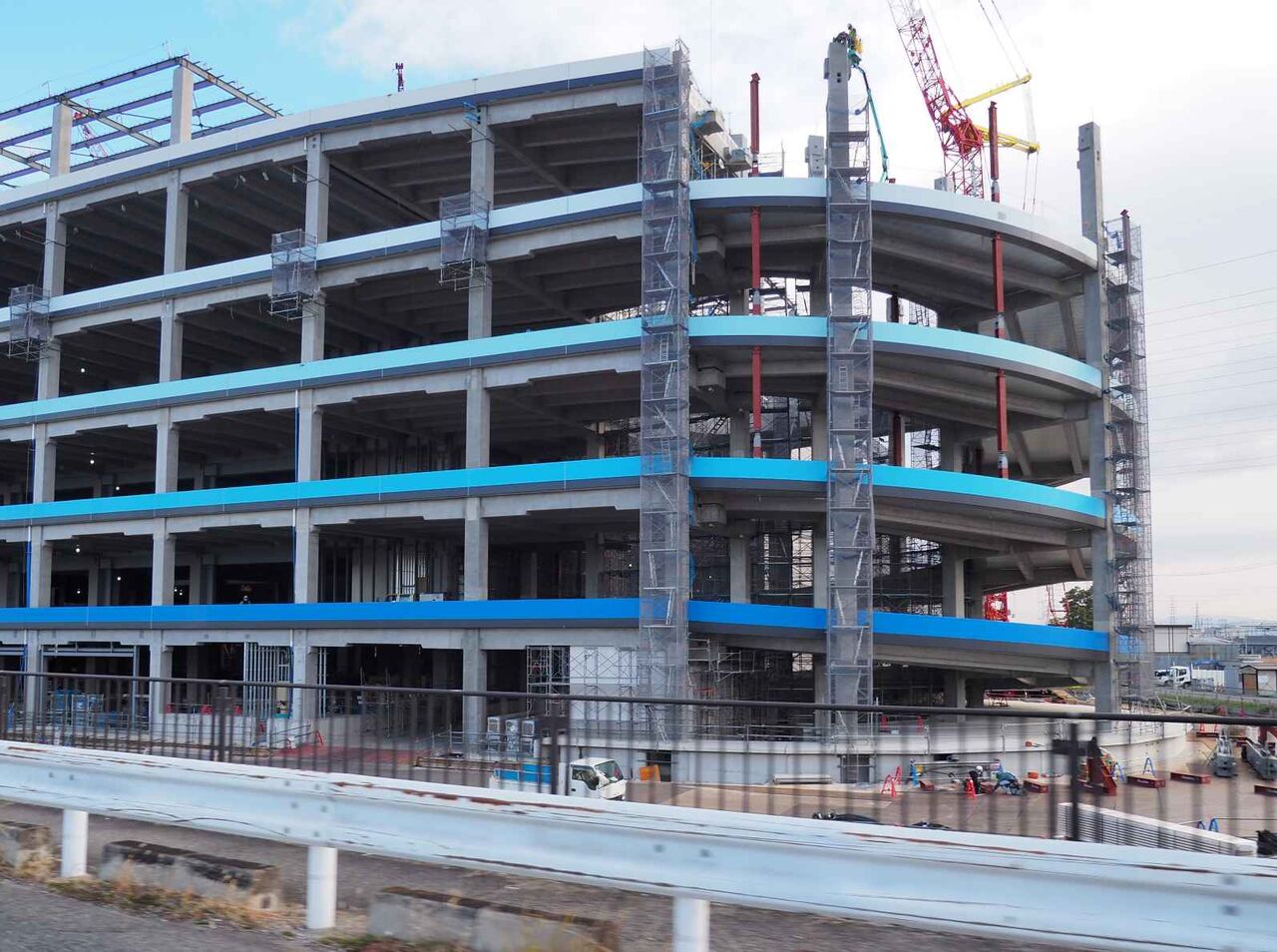 高槻に隣接の茨木市南目垣・東野々宮地区整理事業 「イコクル茨木」の南側の物流倉庫の工事が進んできました。さらに図の左手(東側)の商業施設の建設も始まったようです。
