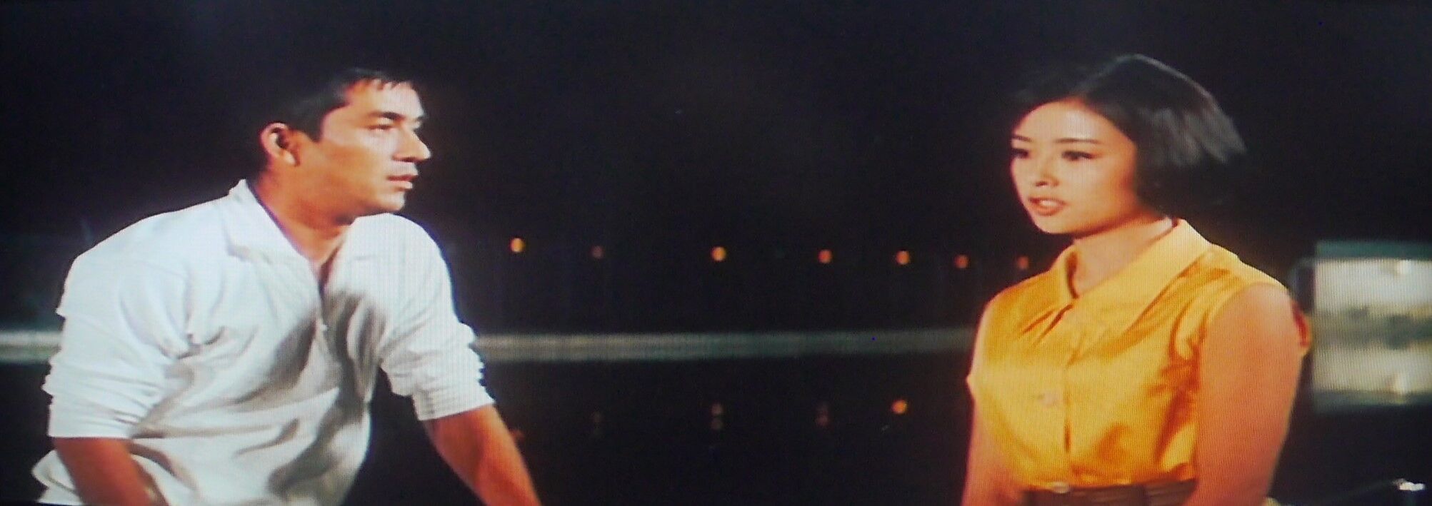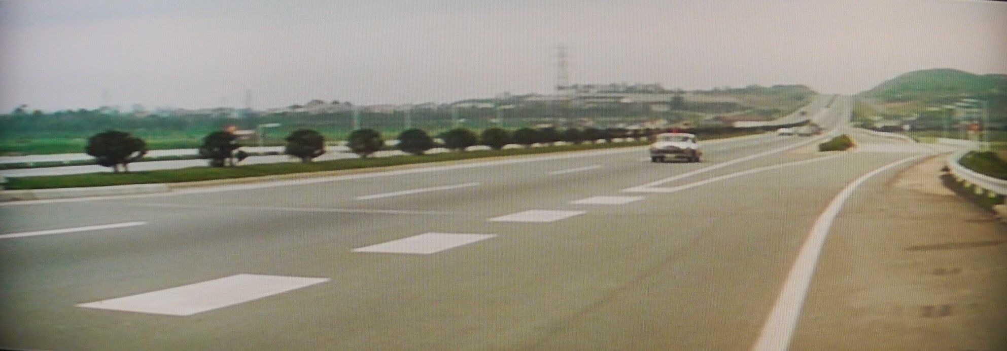 映画の終盤に出てくる加山雄三がオーストラリアとの水泳大会をしているときに、青大将と星百合子さんが名神高速を走り、パトカーが追いかけるシーン