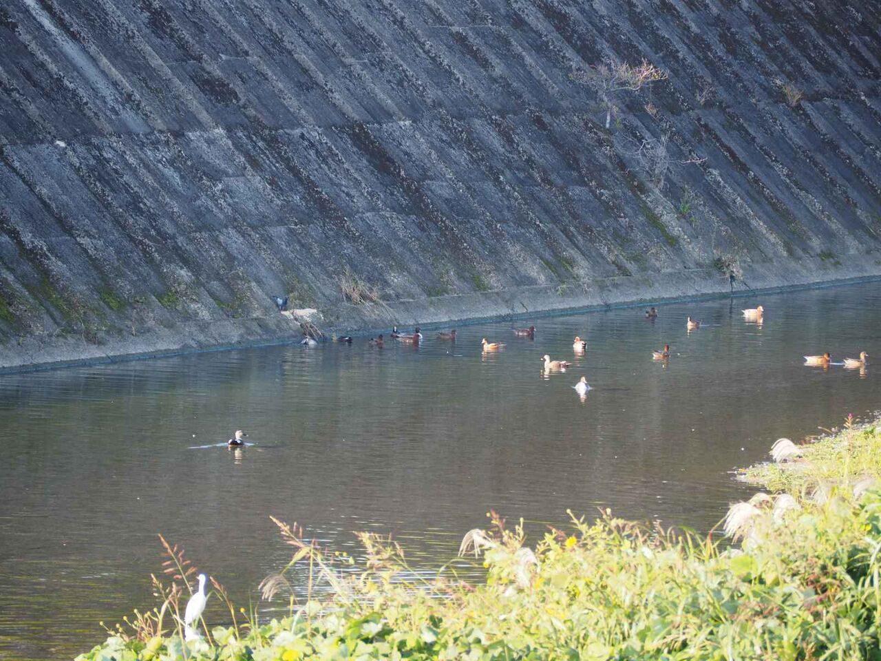 堰のところでは、コガモくんがたくさんいました。こちらもずっといてほしいですね。また、観察していきたいと思います。