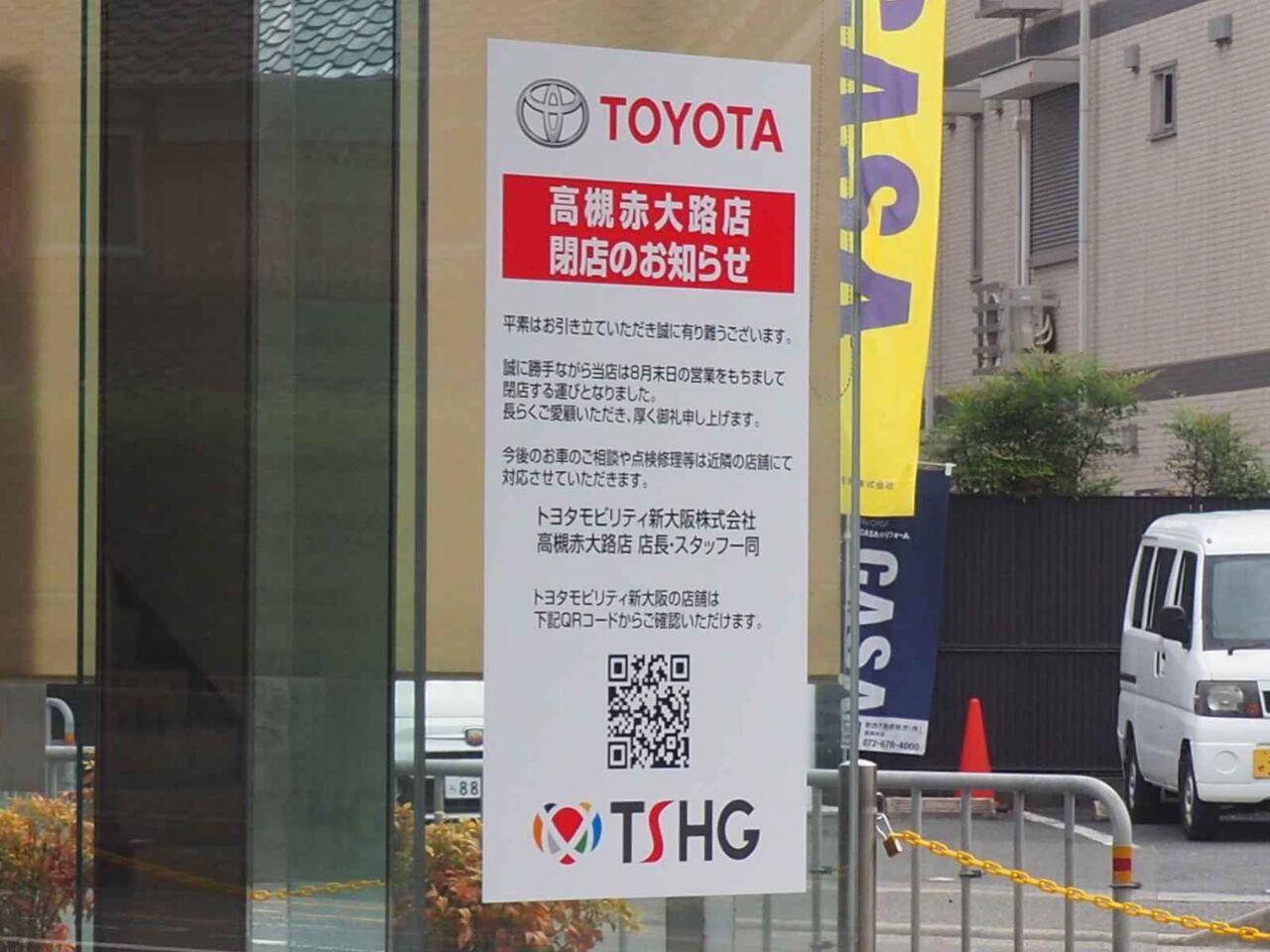 トヨタモビリティ新大阪 高槻赤大路店が8月いっぱいで閉店されたようです。
