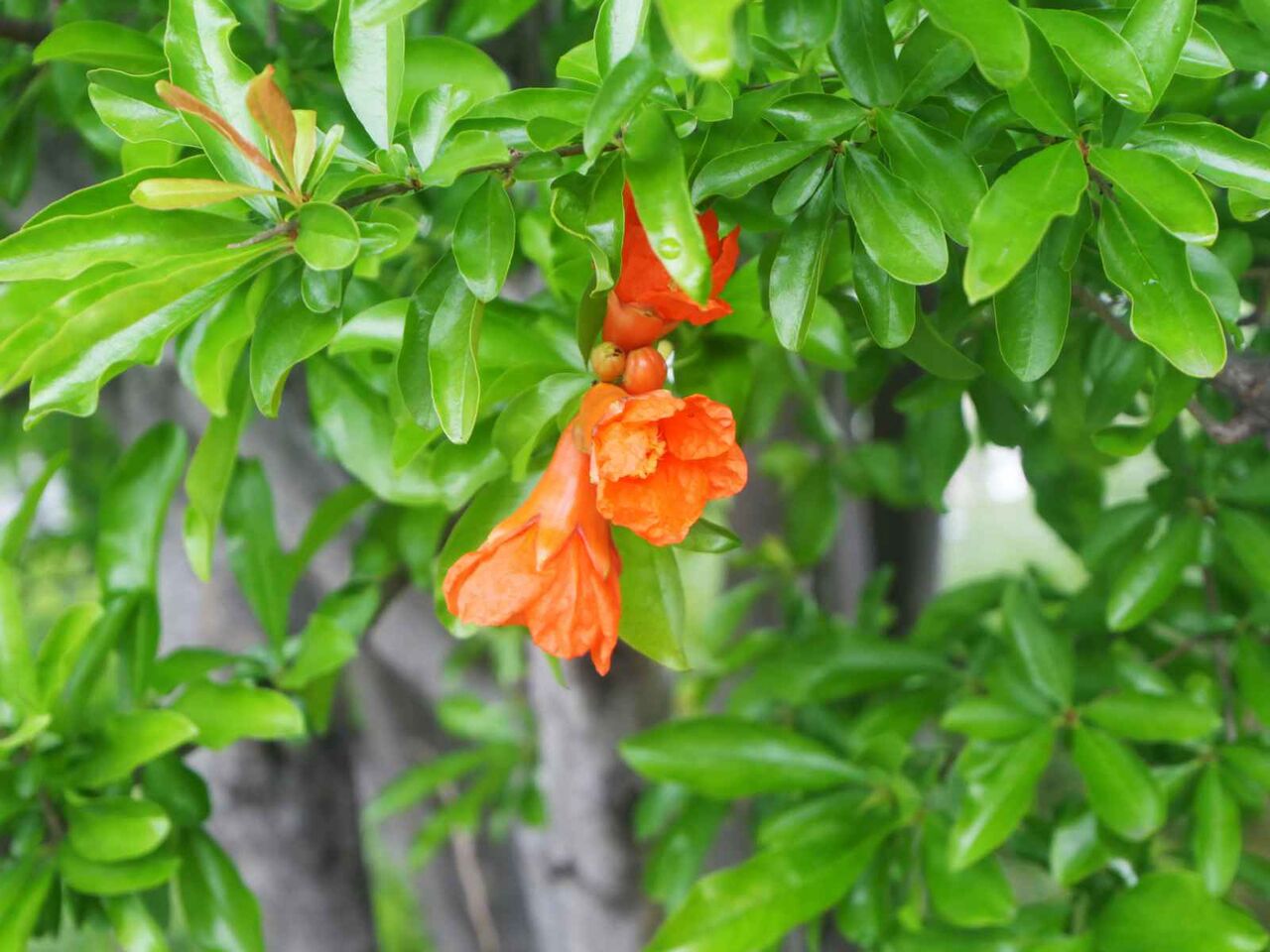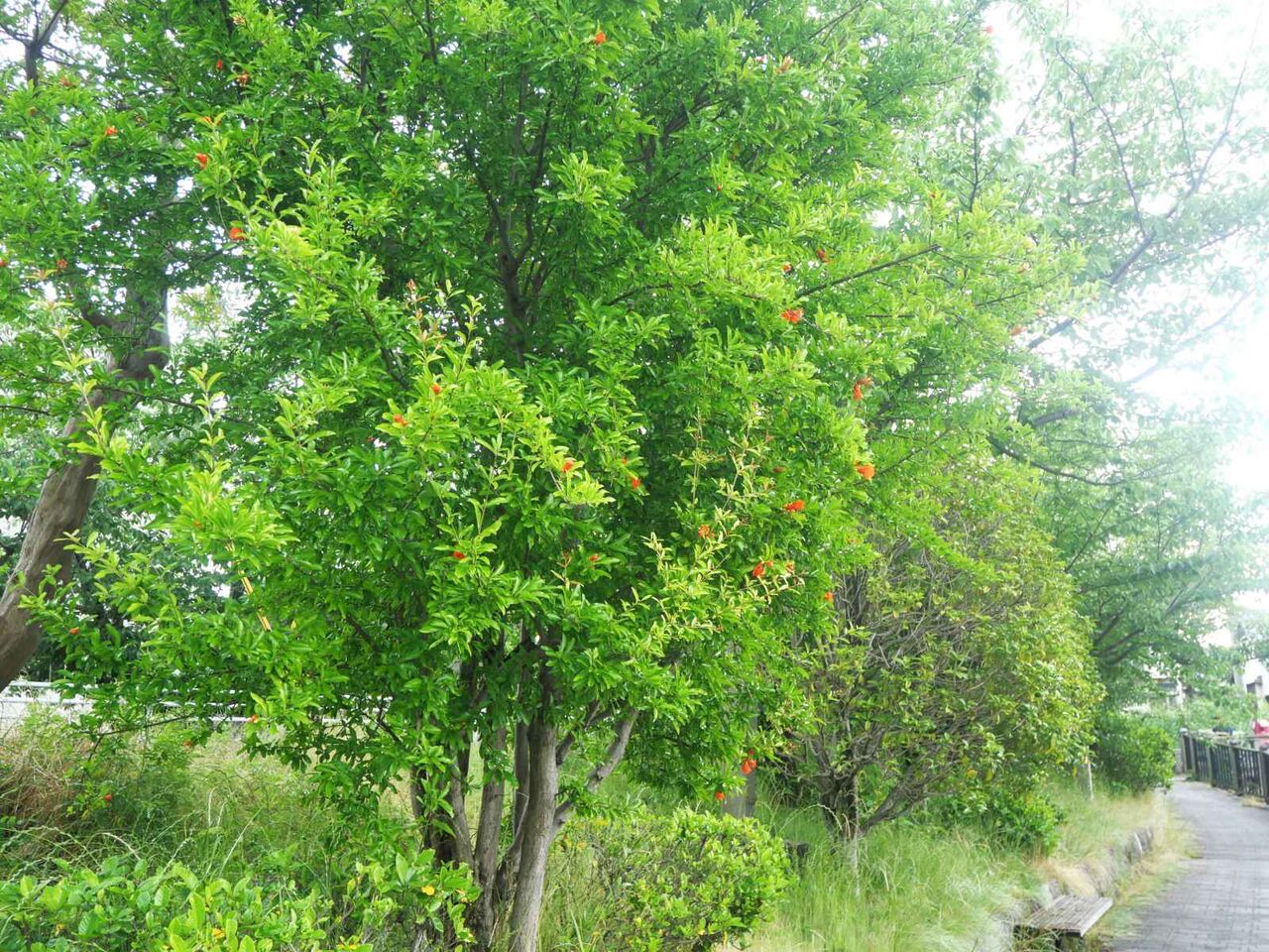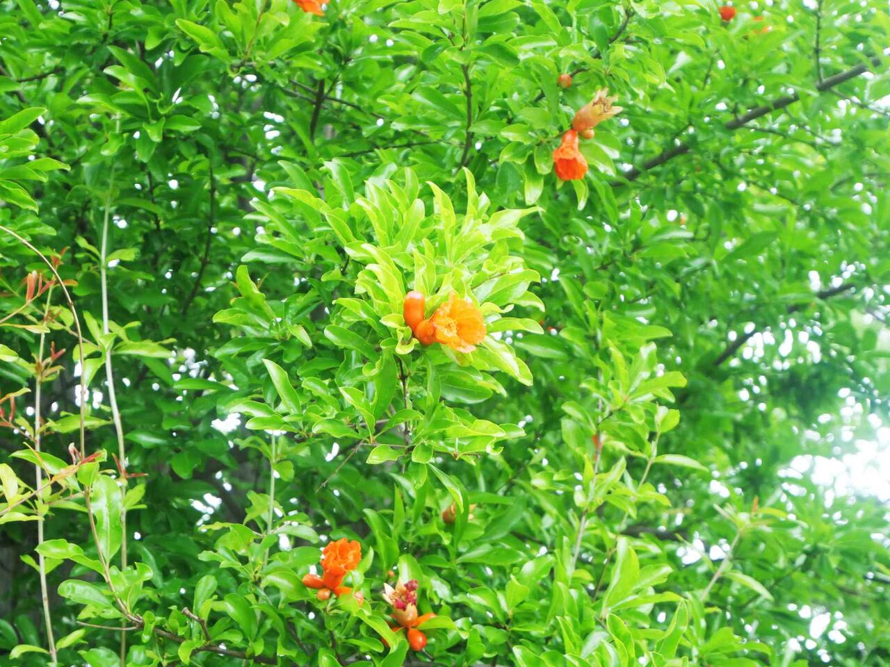 高槻の街かどでザクロの花を見かけたました。(2024年6月)