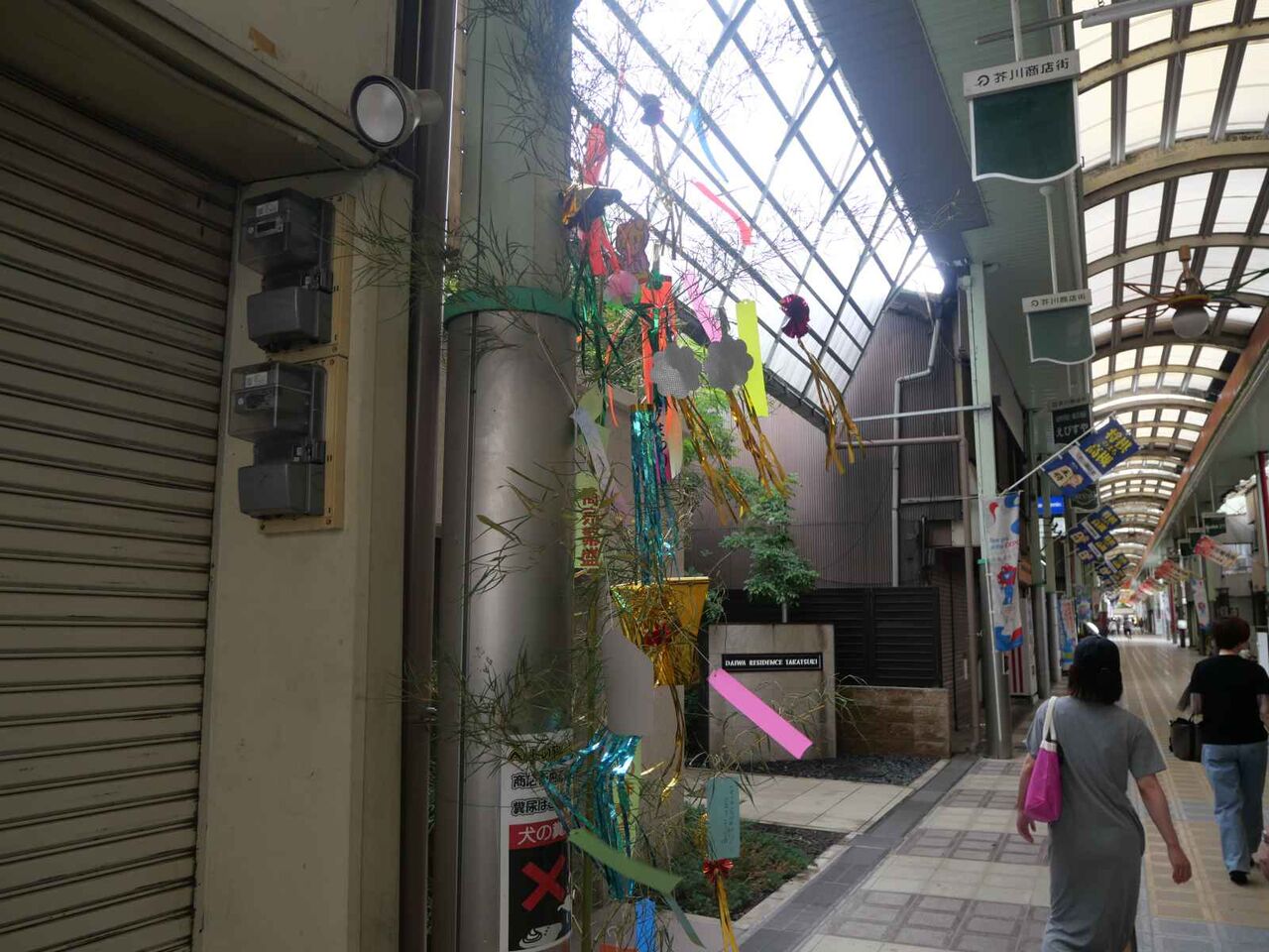 七夕の飾りですが、芥川商店街に飾りのようすが見られました 2024年