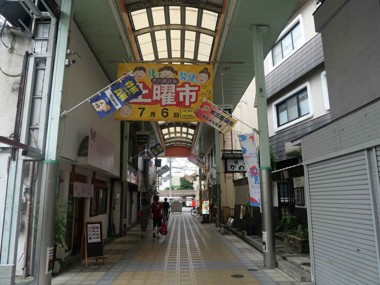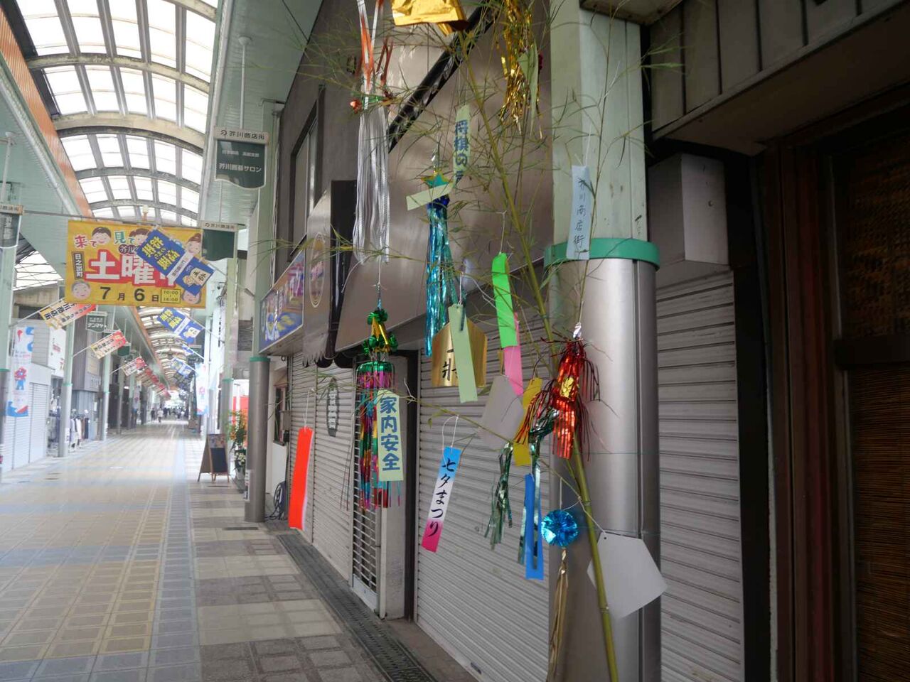 以上、芥川商店街の七夕の飾りと日曜のお店のようすでした。