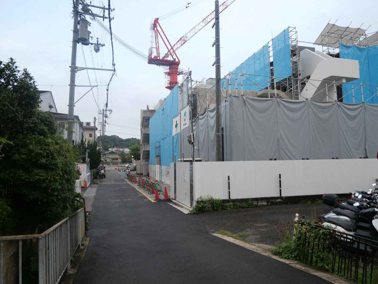 ローソンと、緑ヶ丘病院との間の道路を入って東側を見ています。工事はこの右手。
