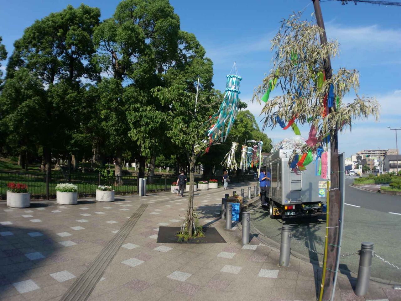 ロータリーには同じく七夕の飾りがありました。