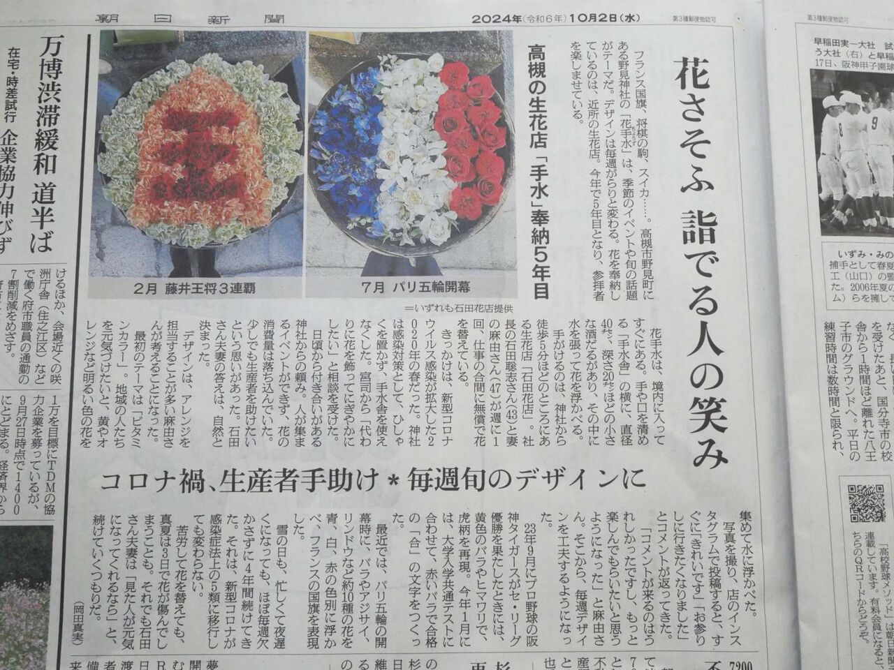 なお、そのときにもお知らせがありましたが、朝日新聞(上は自前のもの)に石田花店さんの記事が載ったようです。