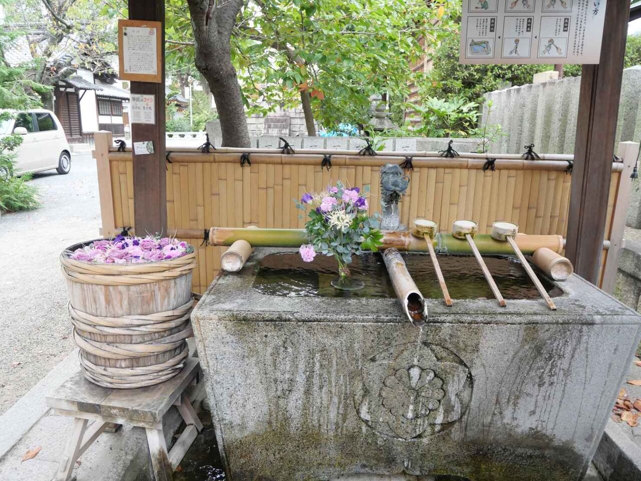 秋らしいの花手水をお楽しみ下さい🍁#高槻 #高槻市 #秋惜しむ #大阪観光 #京都観光 #御朱印 #パワースポット #花手水 #野見神社 #石田花店 pic.twitter.com/69V4KVdSwB