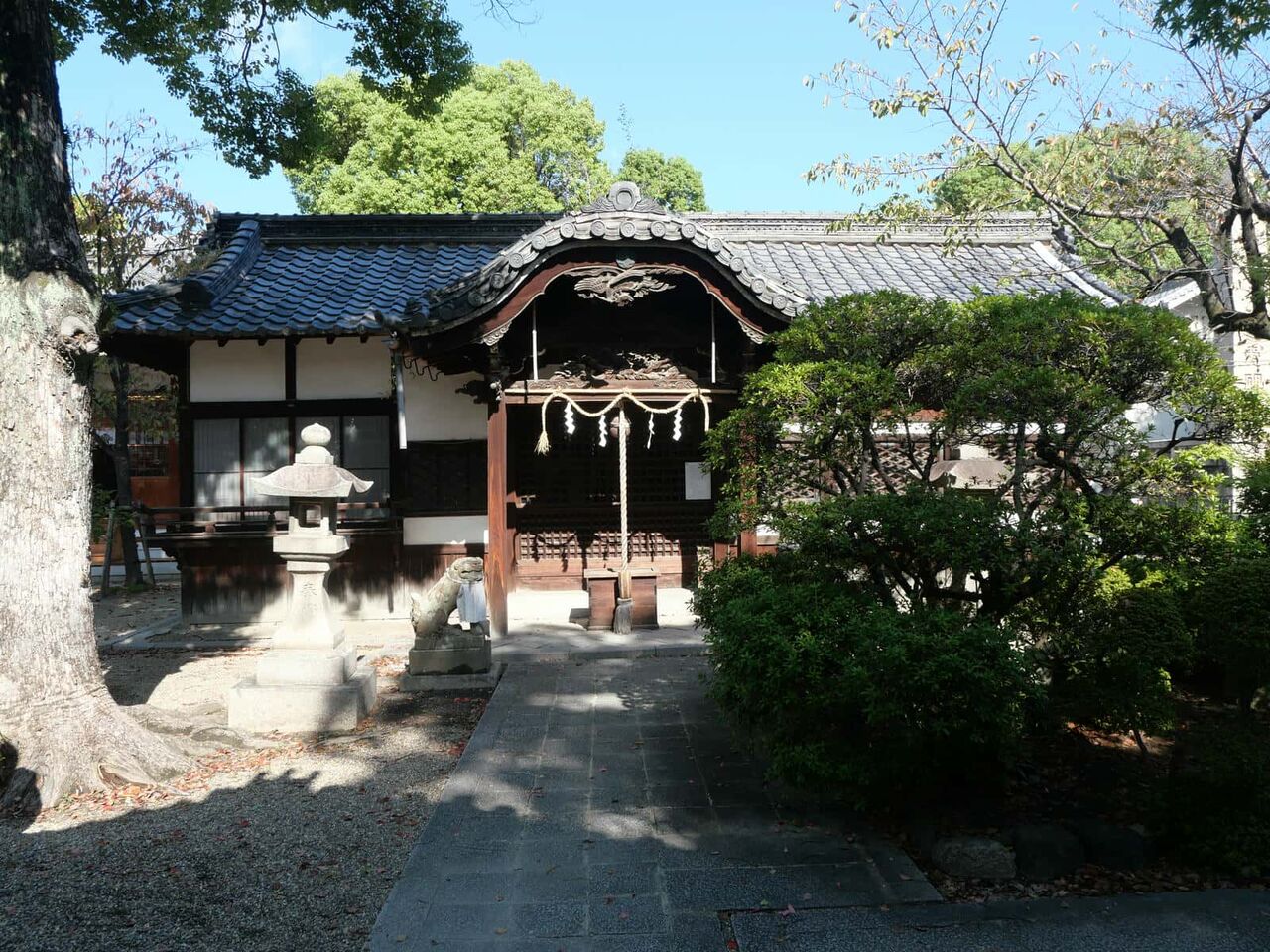 静かな境内、お参りします