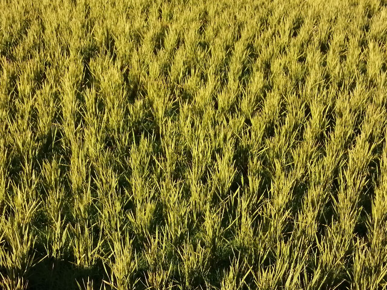 一方で夕方は正面に太陽が来るので、こちらもきれいと思われます。また西日のある西面の稲のようすが撮れましたら追記します