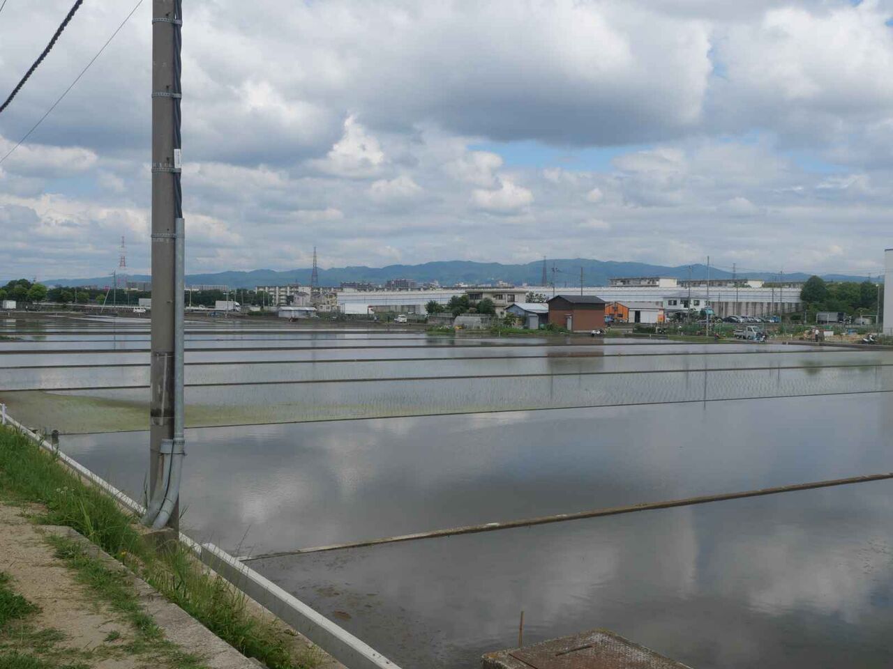 高槻の塚脇方面でも田植えが始まってるようです。(2024年6月1日)先週芥川の水がすごく少なくなって、今年も田植えかなあと思っていたところ、火曜に豪雨で水量増加し心配しました。週末には中南部の田んぼでも、水路に水を引いたりして、そろそろ田植えのために水を張ってるようすが見られますね。