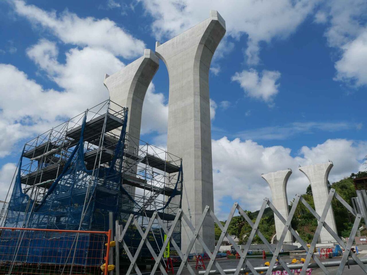北側の2本の橋脚の工事はできてきたようです。