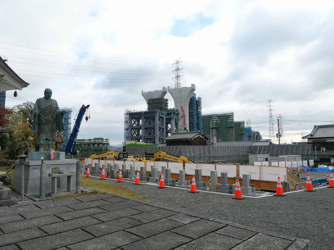 右手、東側には、前回も投稿しました橋梁工事のための仮の橋脚が作られています