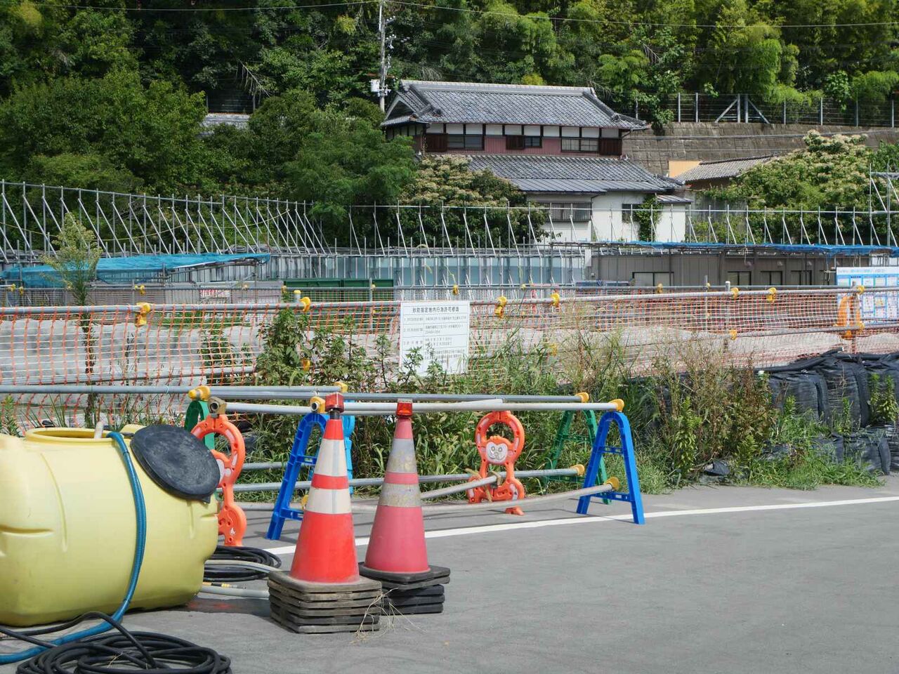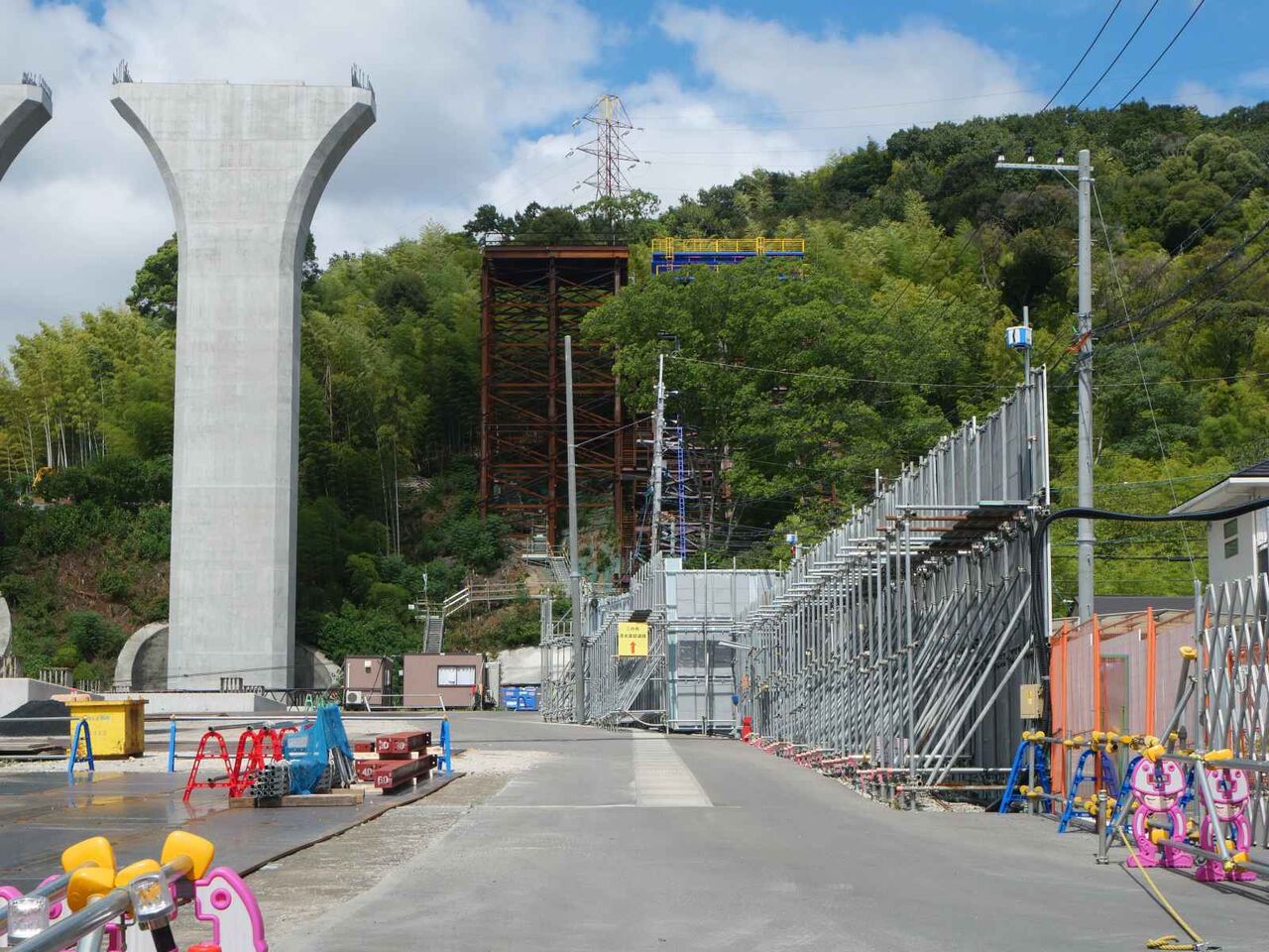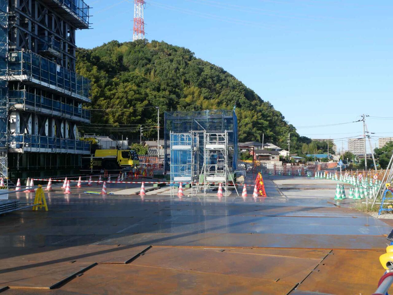 梶原の山方面には足場が組まれています これが何をつくるのかがまだよくわかっていません