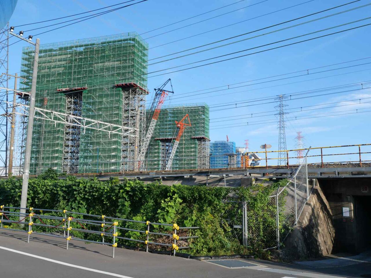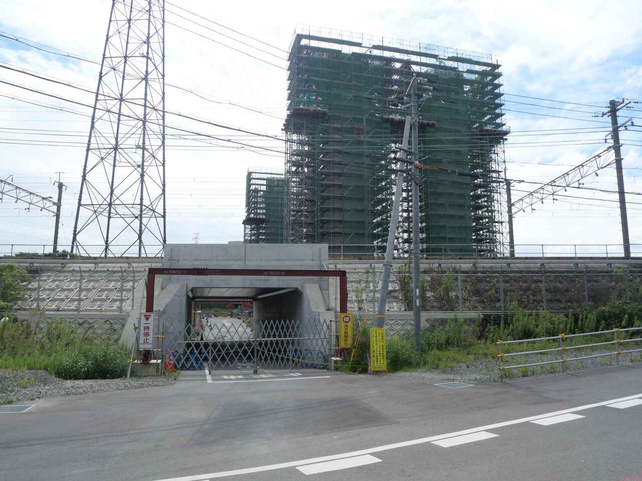 JRの南側の2本の橋脚はまだ建設中です。JRの下のトンネルはできていますが、通行はできないようです。