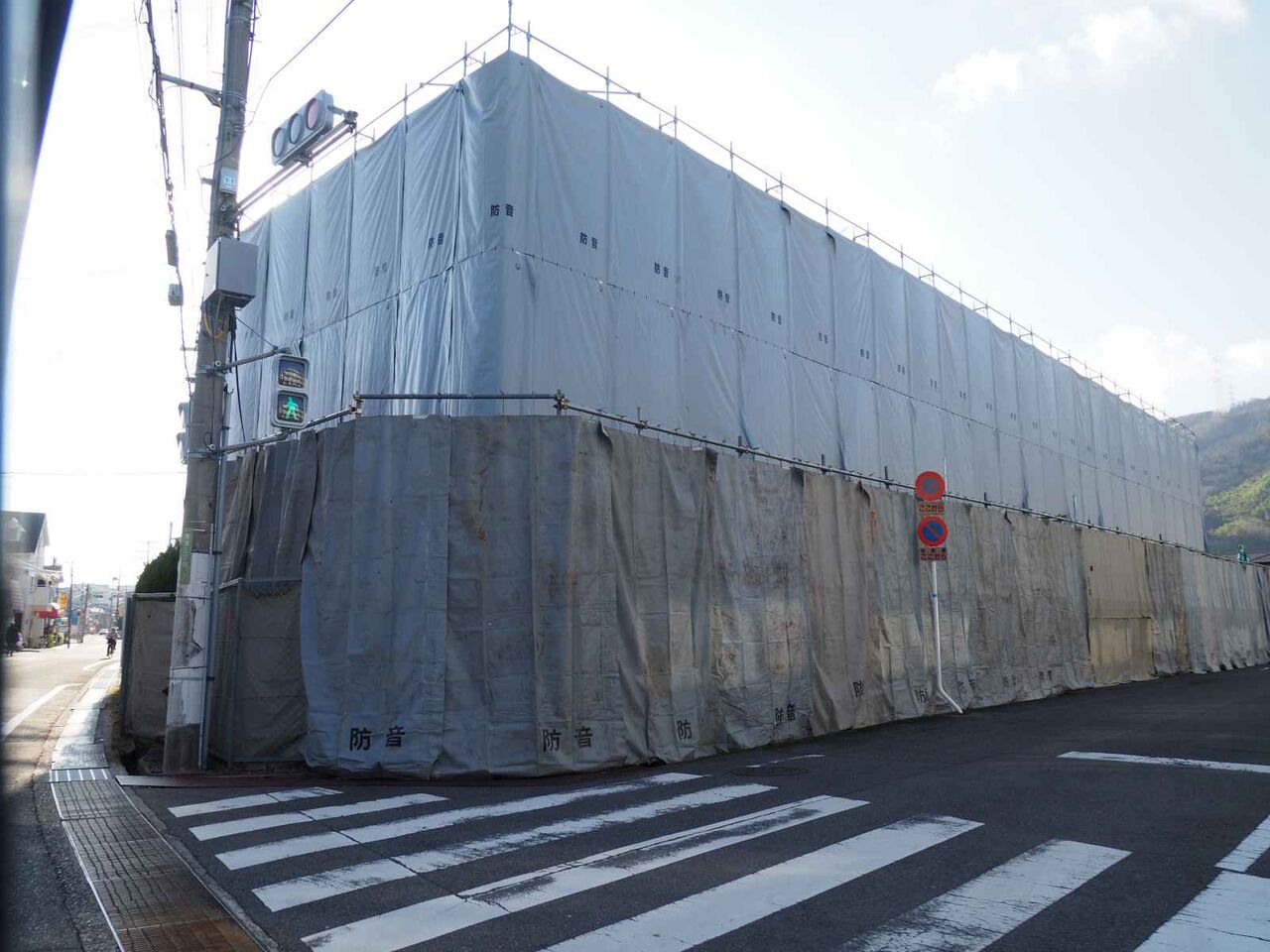 島本町の西国街道沿いですが、大きなマンションの建物ができているようです。NTT西日本島本寮の建物あとです。(2024年11月30日)