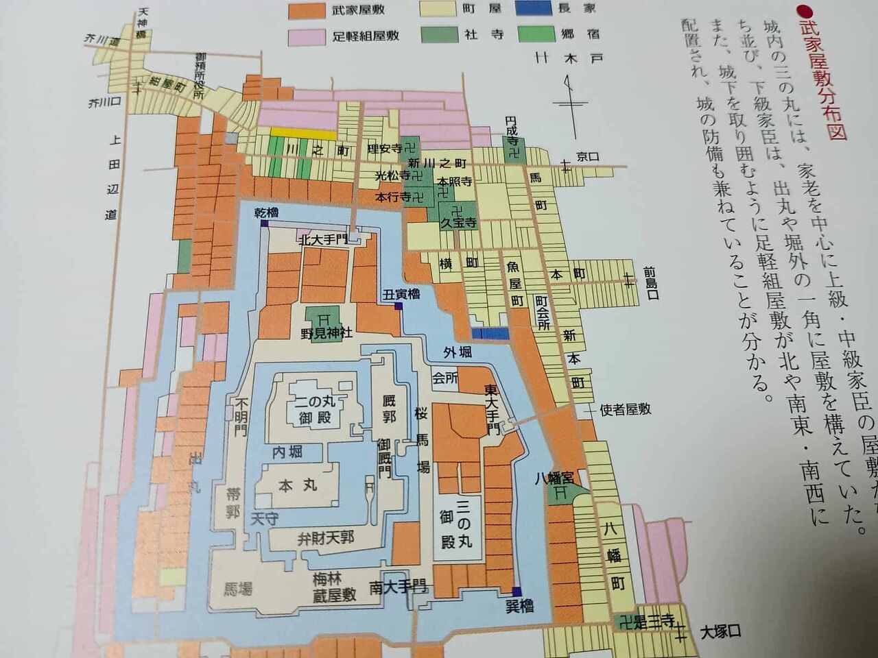 場所なんですが、現在のしろあと歴史館、第一中学校の校舎の付近(中央下の会所とある場所)のようです。町会所は別にあったのですが、それと合わせた形で再現ということでしょうか?