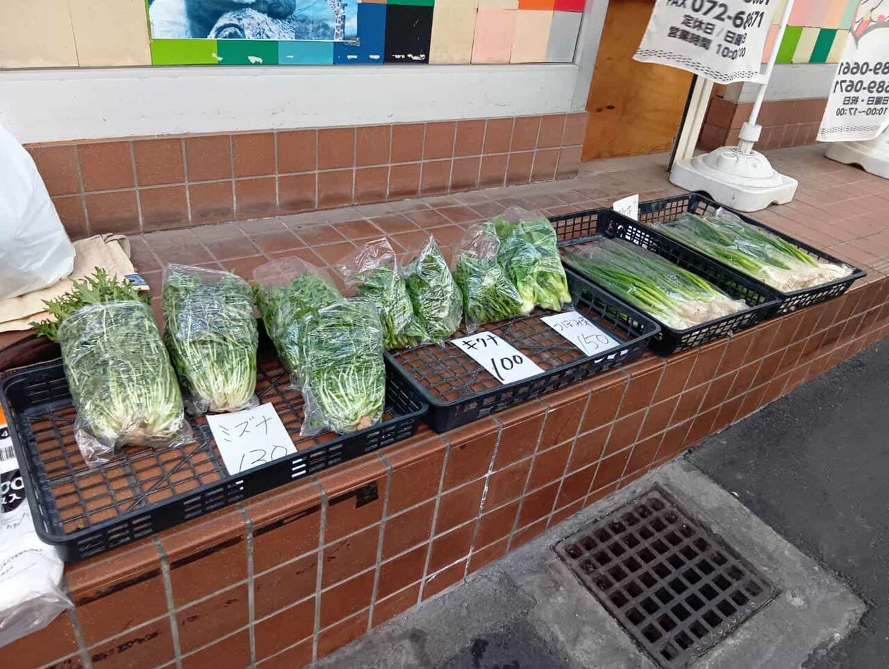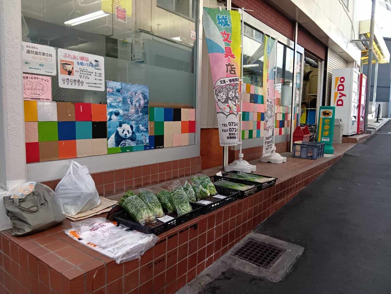 高槻(大阪)最北のアーケード商店街の中で、文具店城の前で曜日限定にて販売されてる朝市。