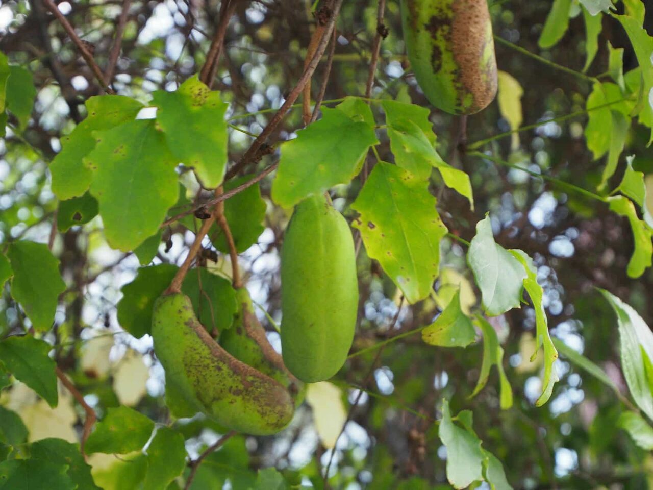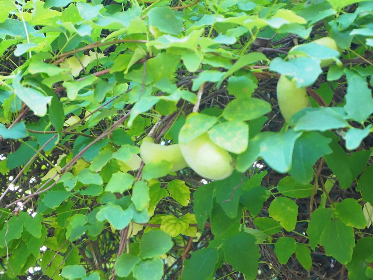 高槻の山あいでみかけました、アケビの実です。これって何でしょうか?