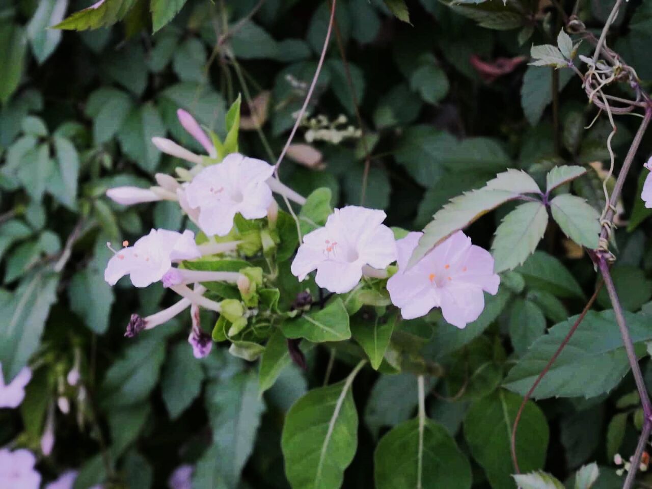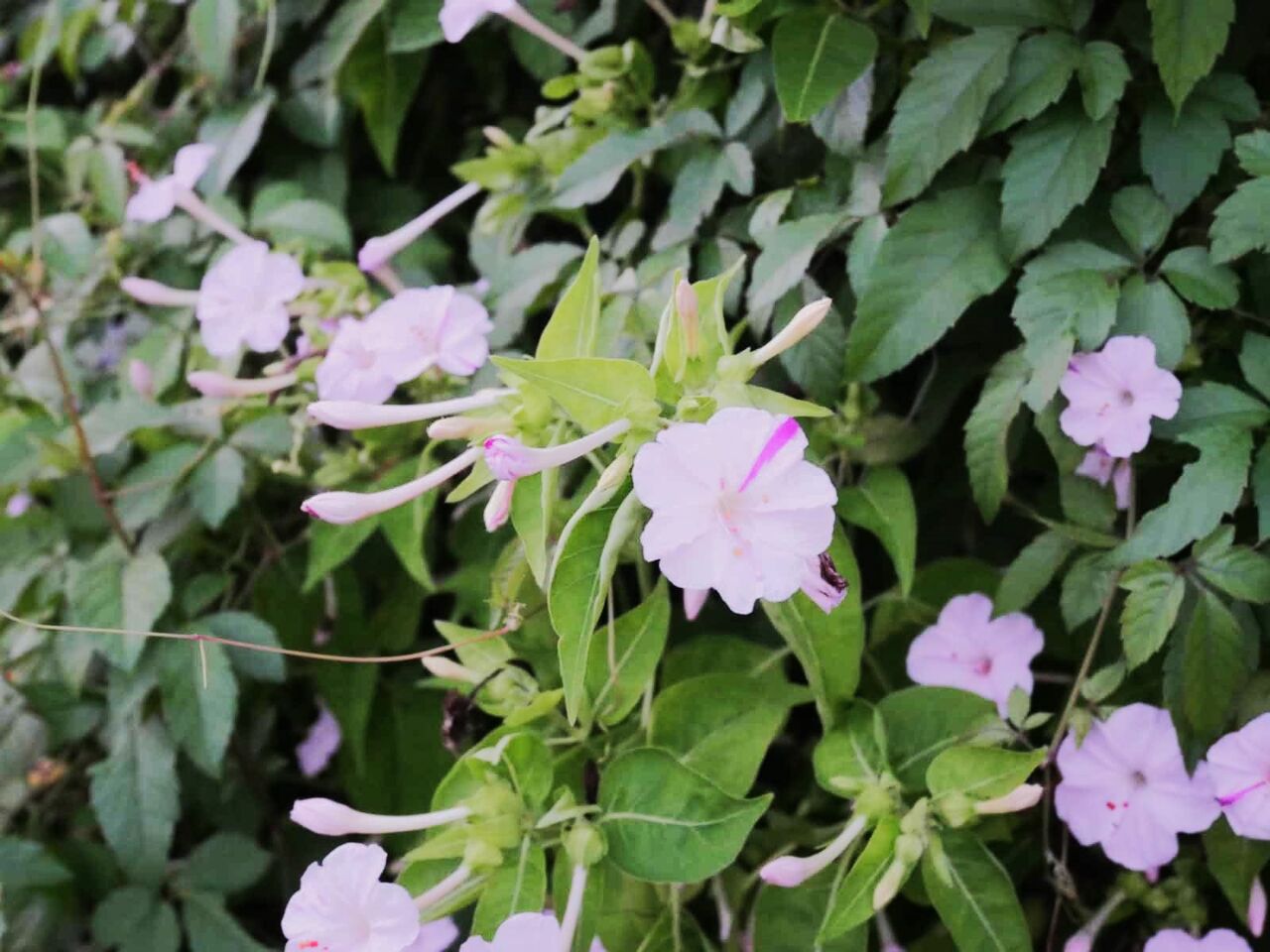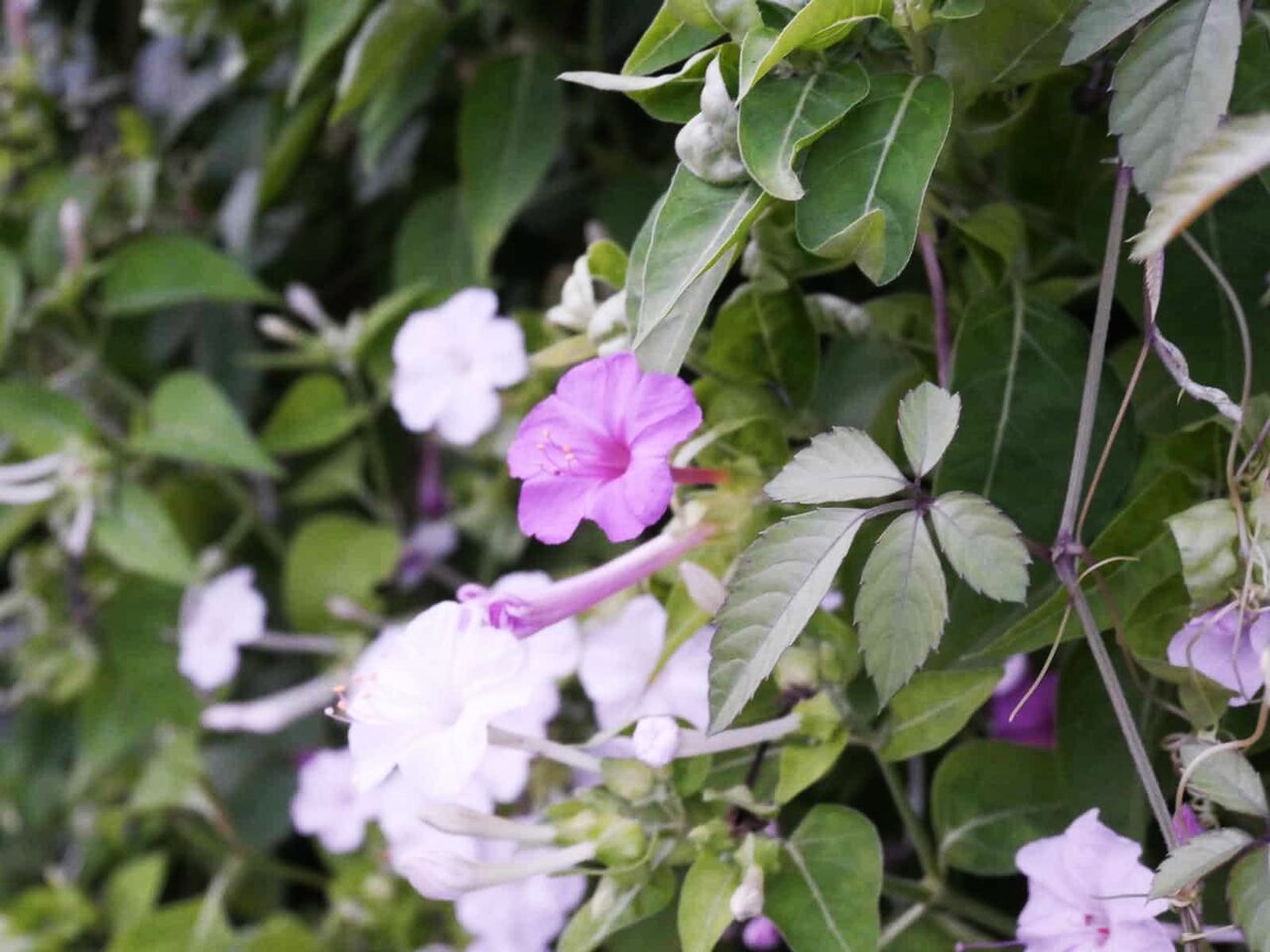 高槻の街かどでときどき見かけるオシロイバナ、小さな朝顔のようで、いっぱい花のつぼみがあるのですがいったいいつごろ(時間帯)咲くのでしょうか?いつも通りがかりの朝はしぼんでいます。休日の昼間もしぼんでいます。。いったい、いつ咲いてんねん!!といつも思っていました。ふだん通らない残りの時間帯(夕方)に通りますと。。