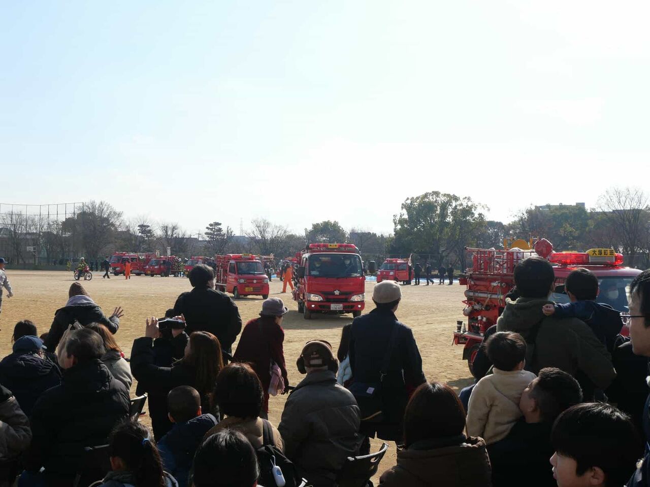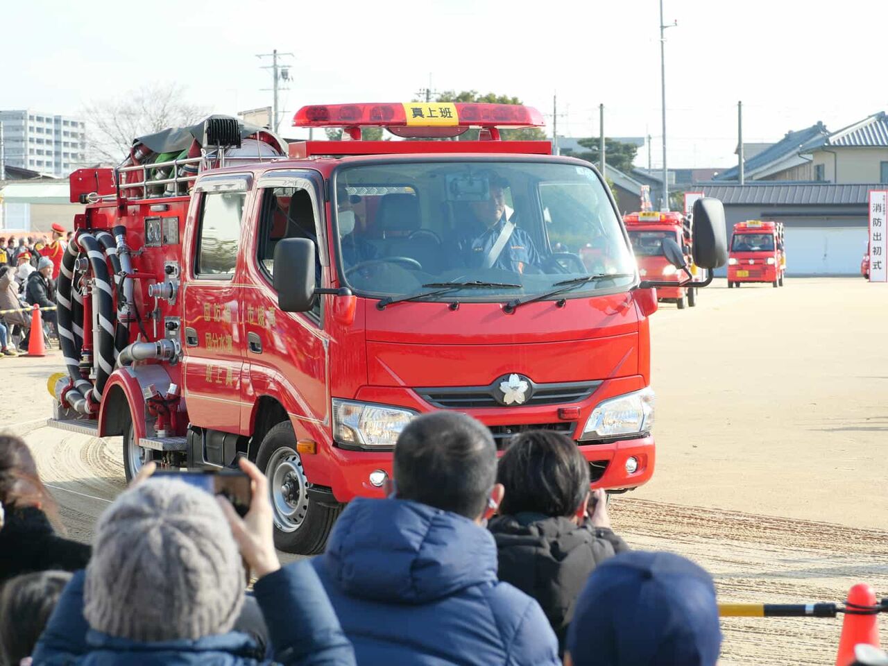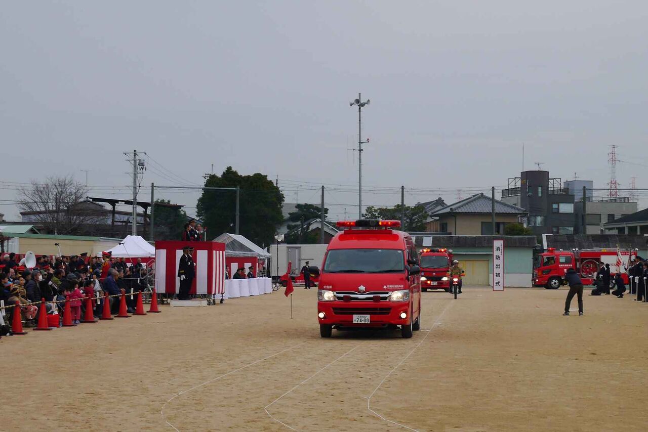 その後、大型の車両、地域の消防団の車両から帰っていくことに
