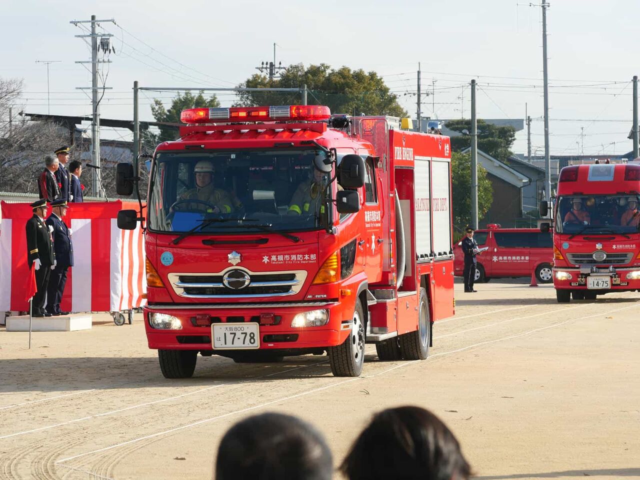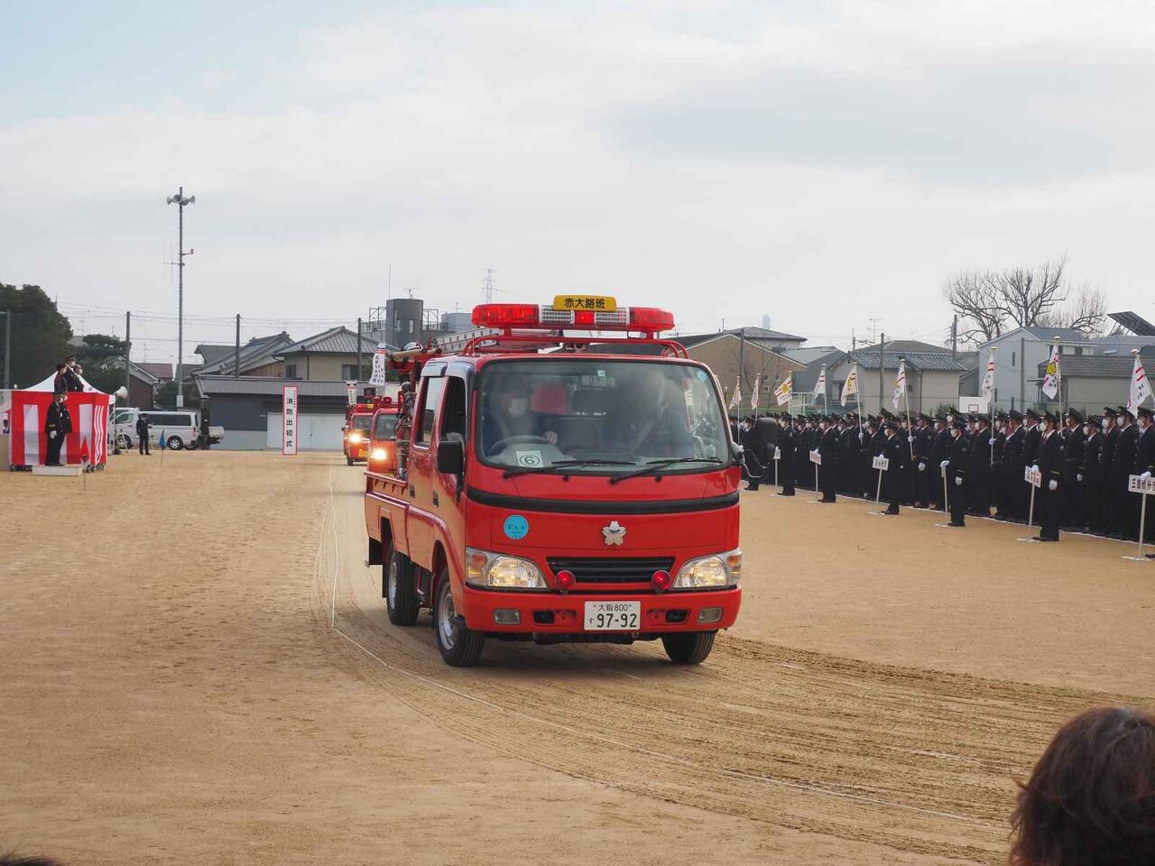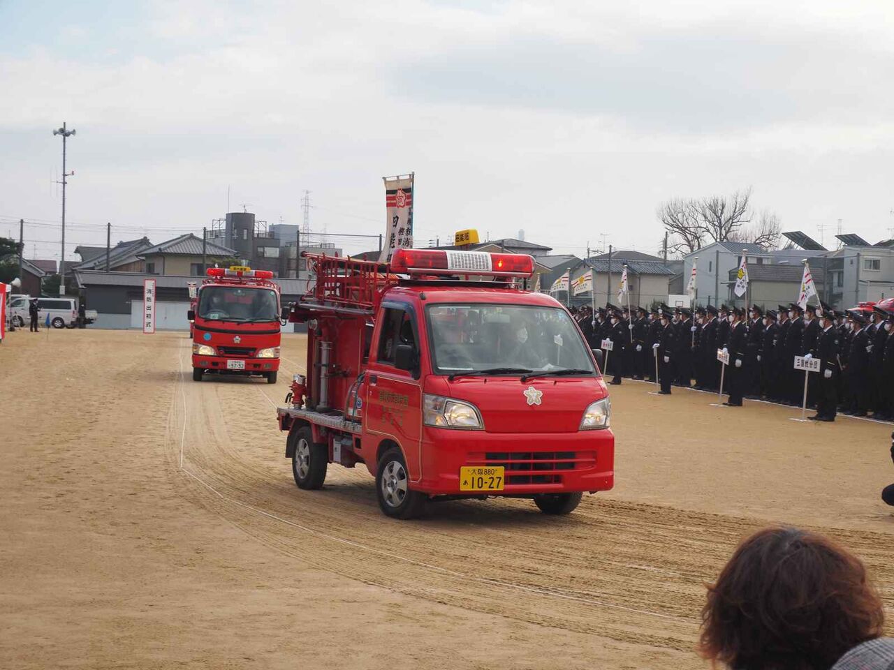 その後、大型の車両、地域の消防団の車両から帰っていくことに