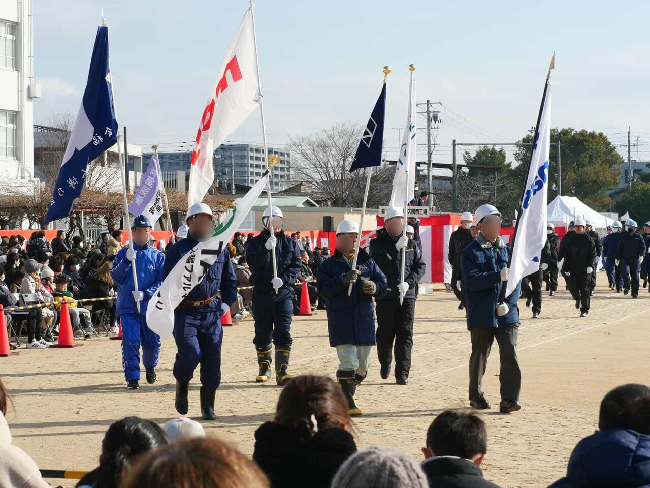 市内の企業さんの消防隊 企業の旗のあと