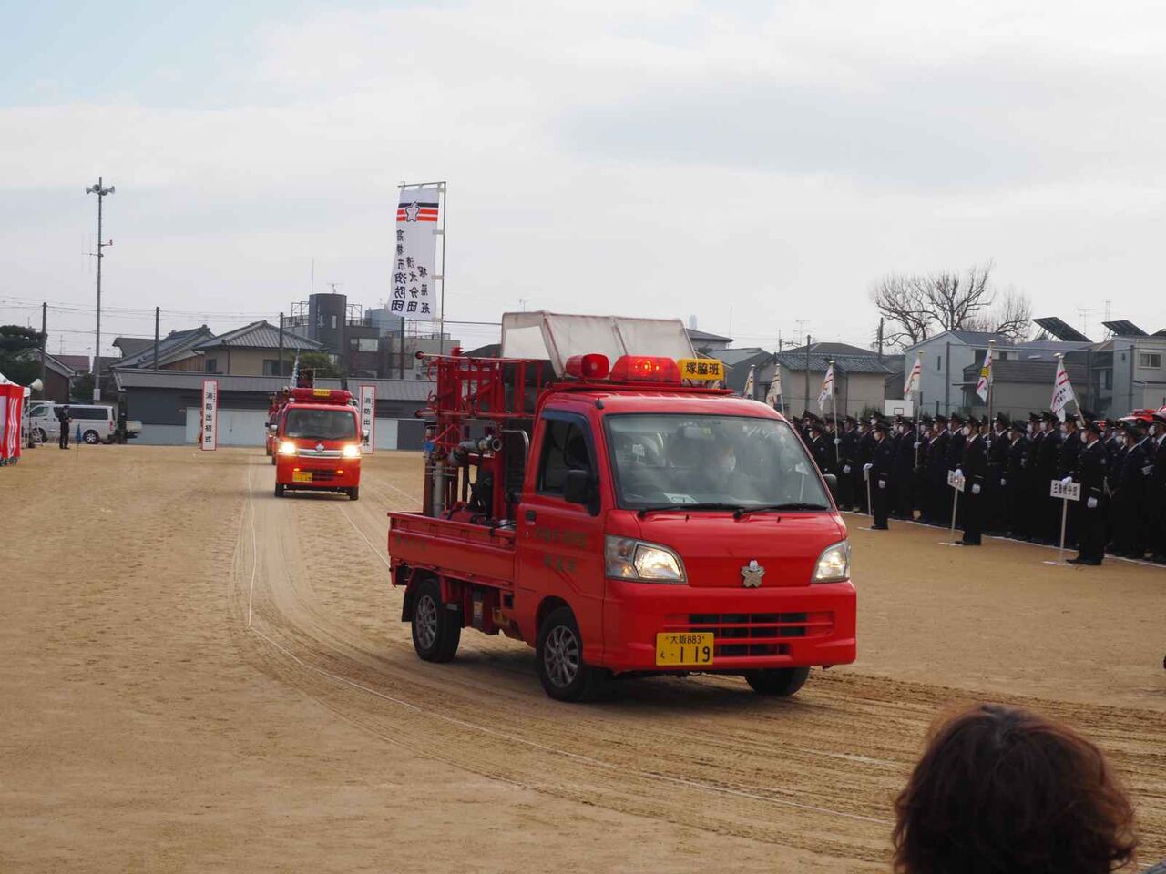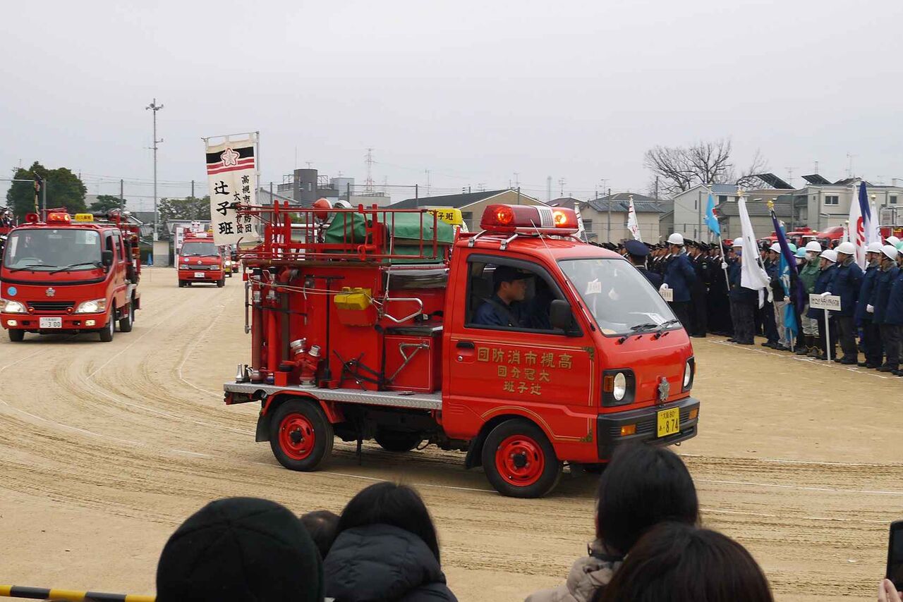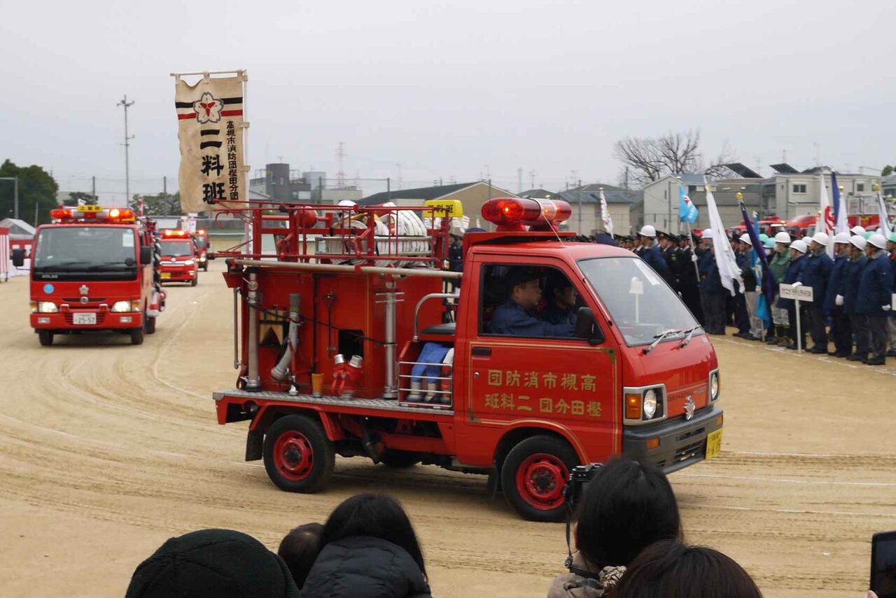 閉会後は、普通に消防団員はそのままの姿で帰路につき、消防車も隊列を作って戻っていきました。