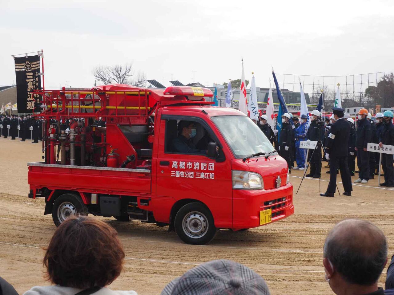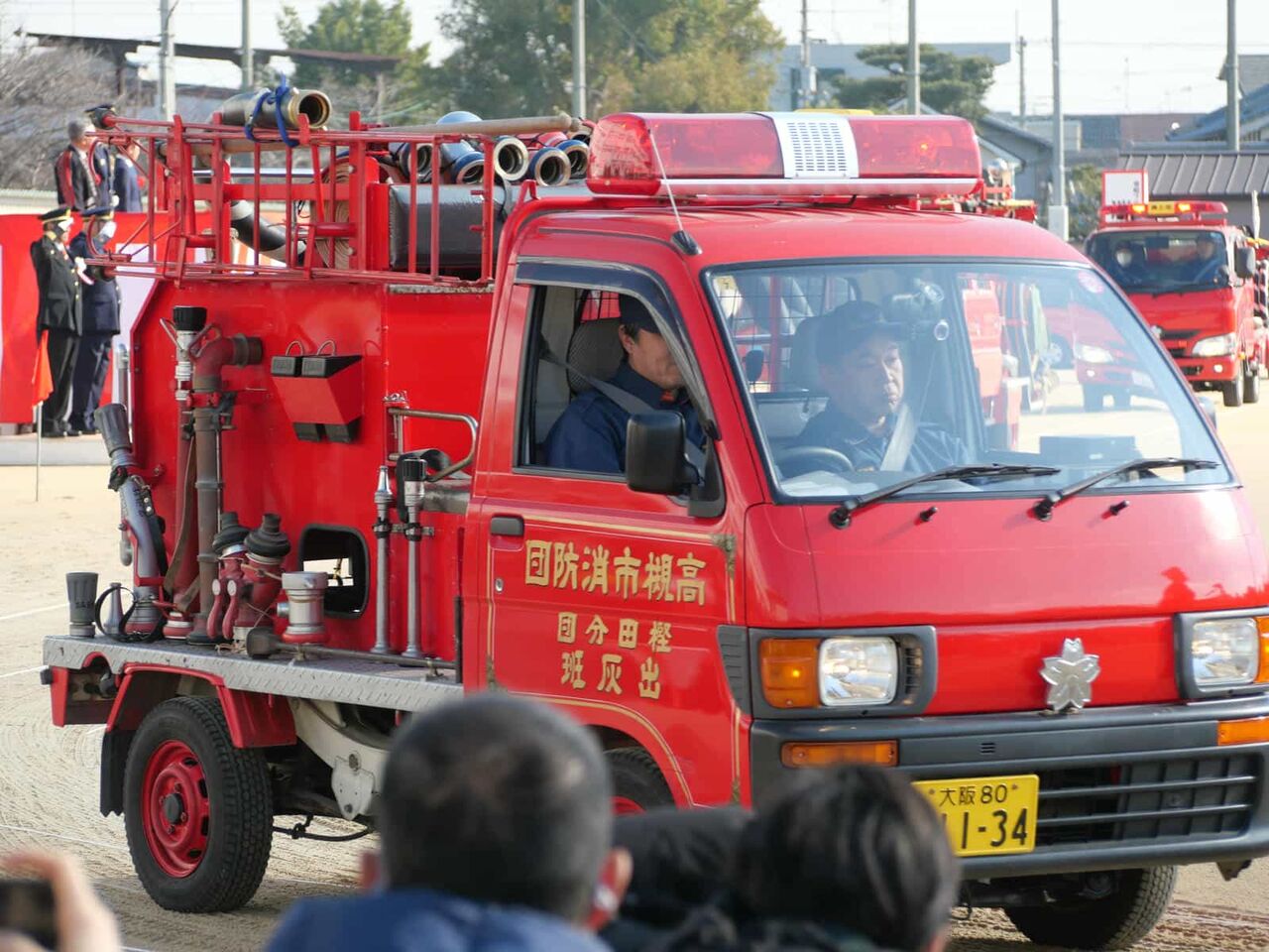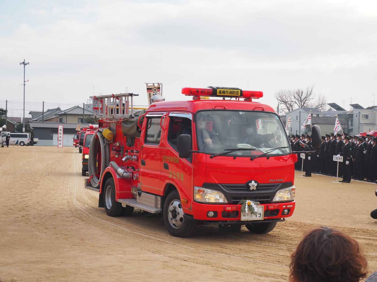 閉会後は、普通に消防団員はそのままの姿で帰路につき、消防車も隊列を作って戻っていきました。