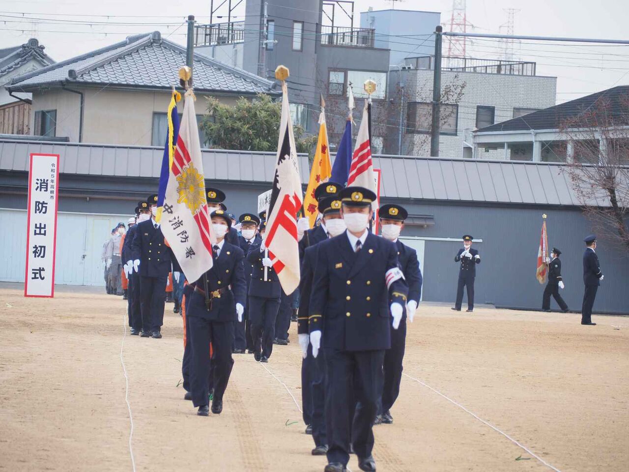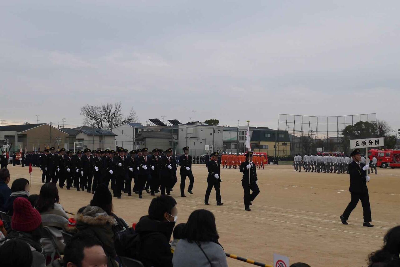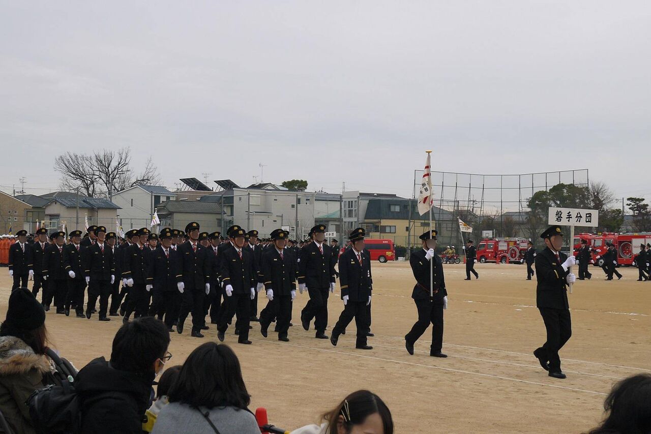高槻市消防団の方々です 今年は、複数の分団の方々が同時に行進されて時間の短縮になったようです