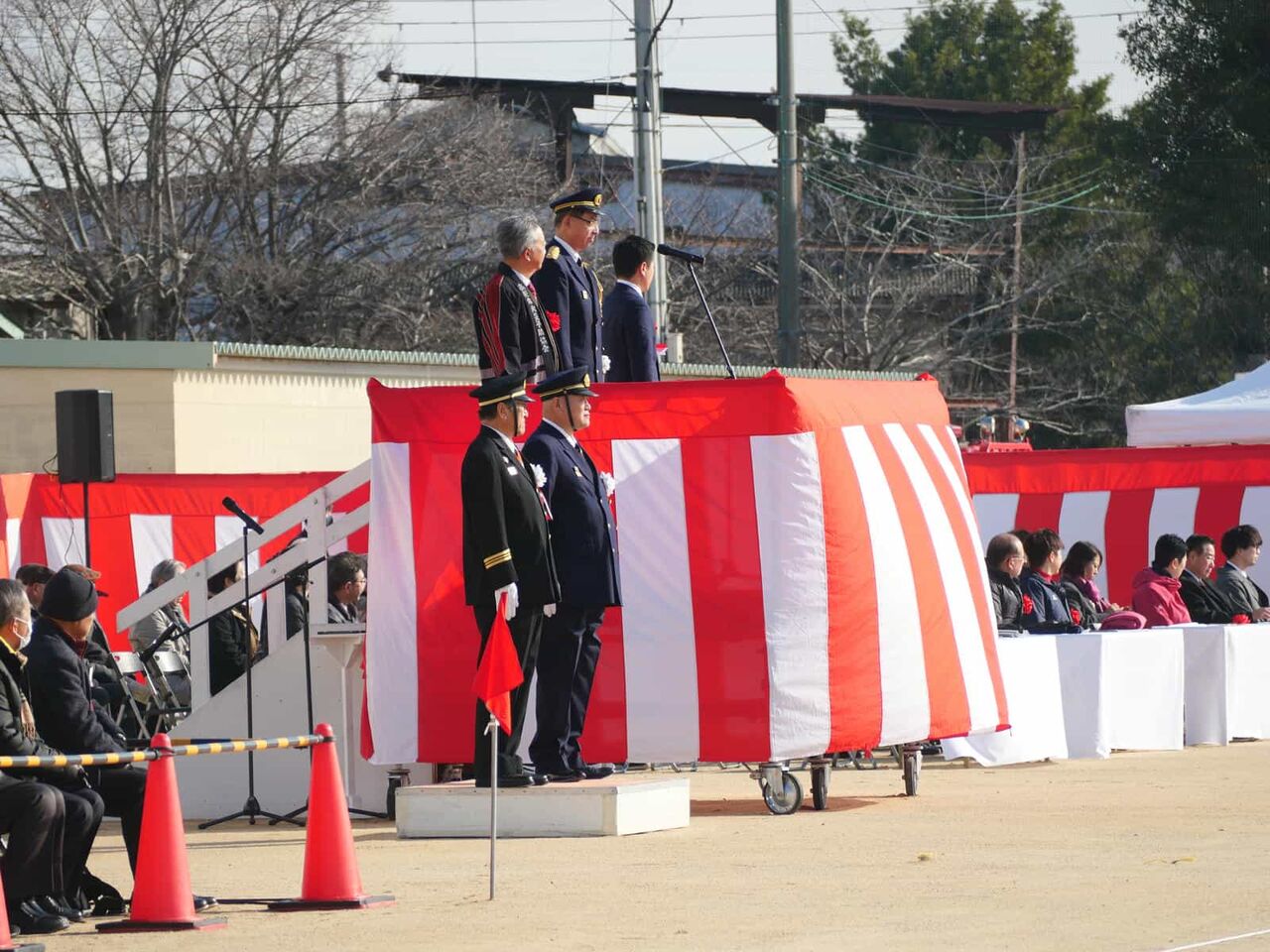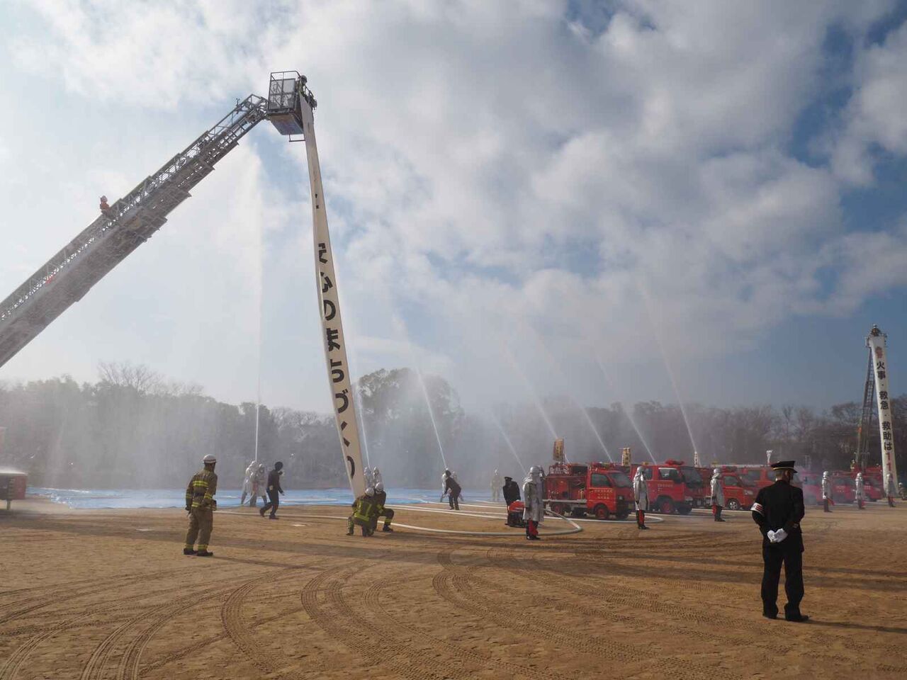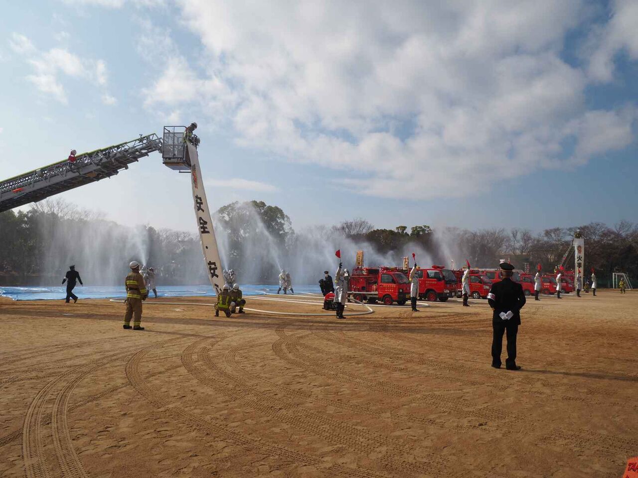 一斉放水のあとに、消防出初式の閉会の宣言があり、