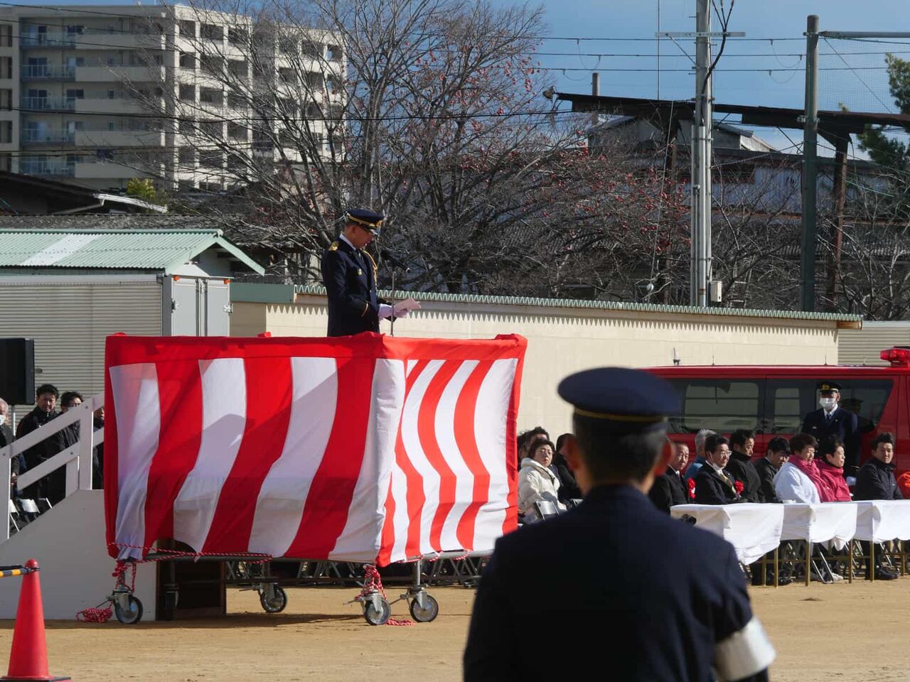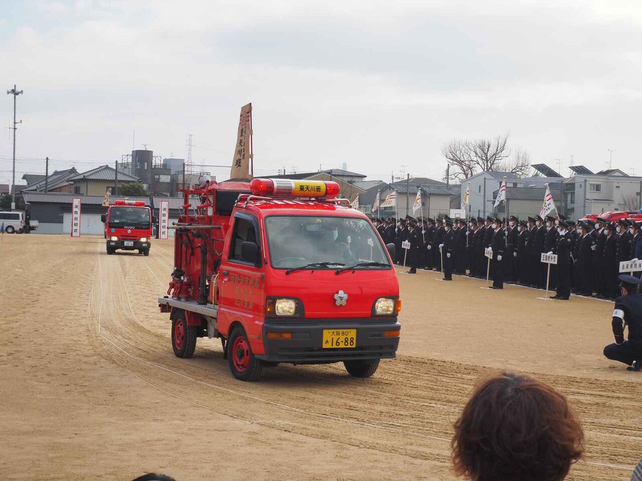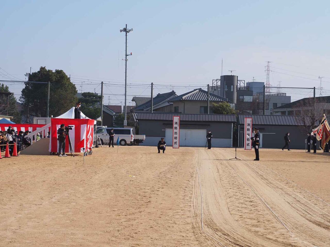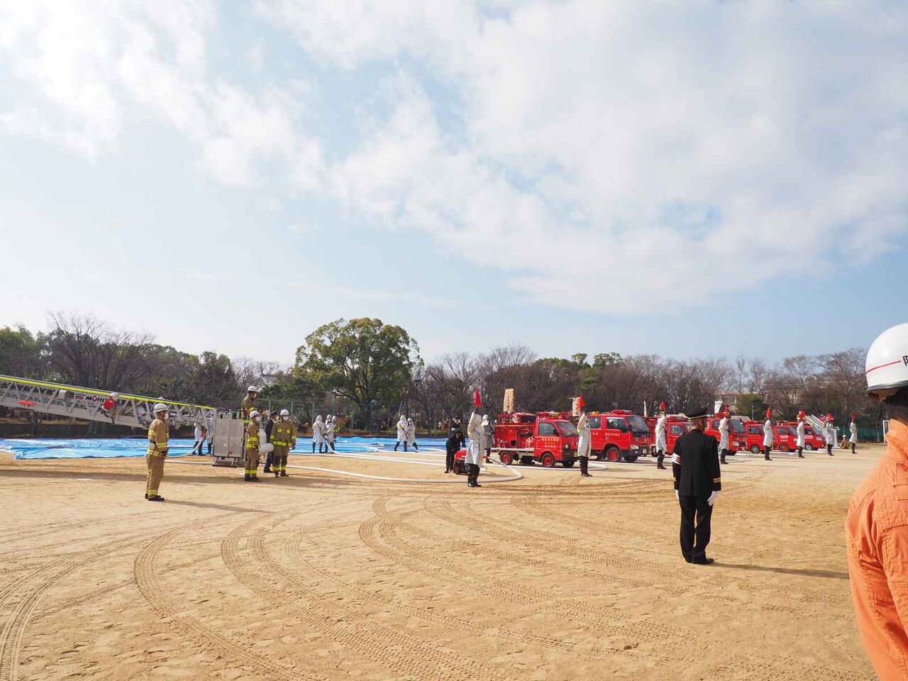 一斉放水のあとに、消防出初式の閉会の宣言があり、