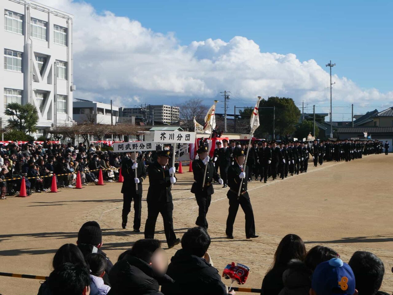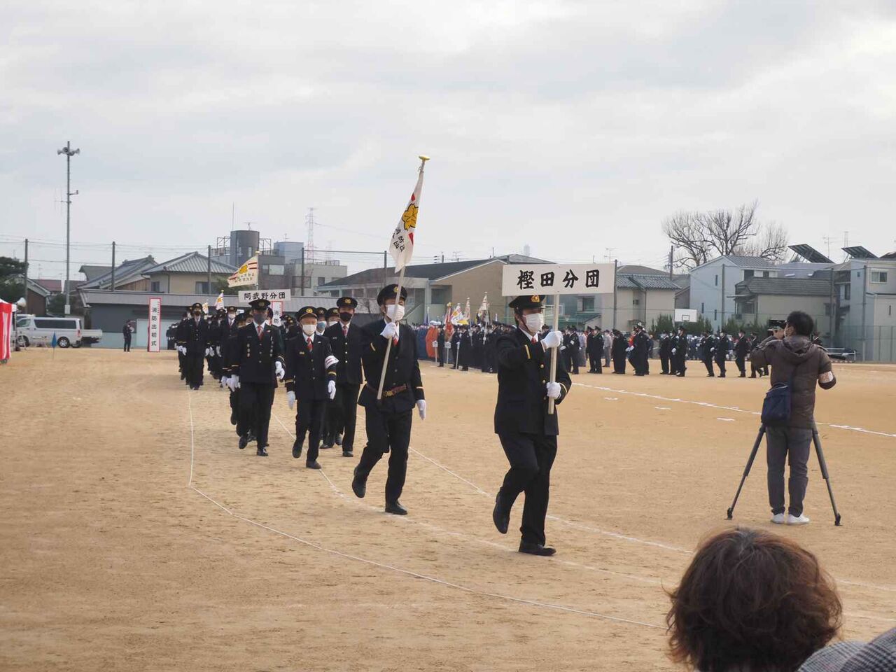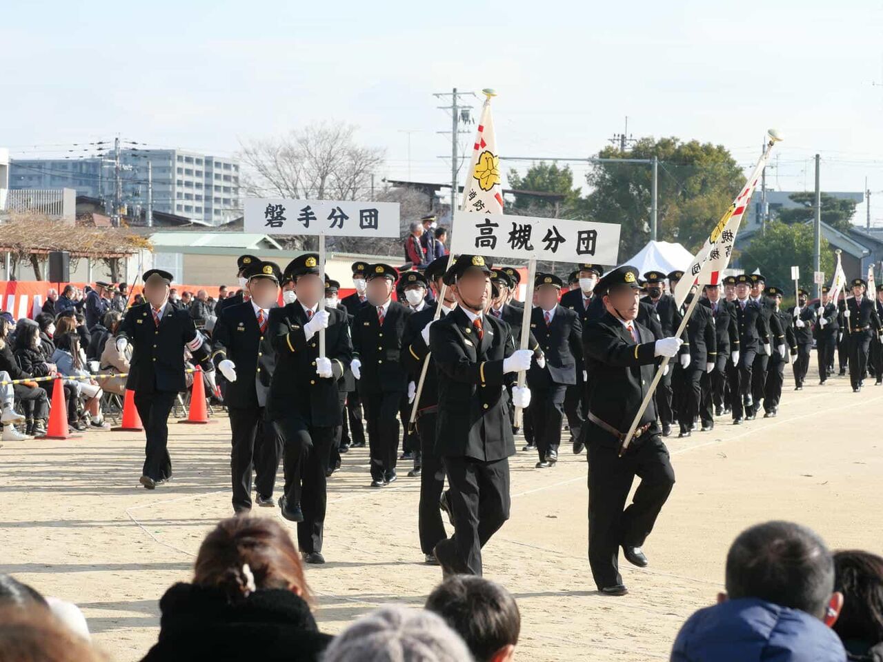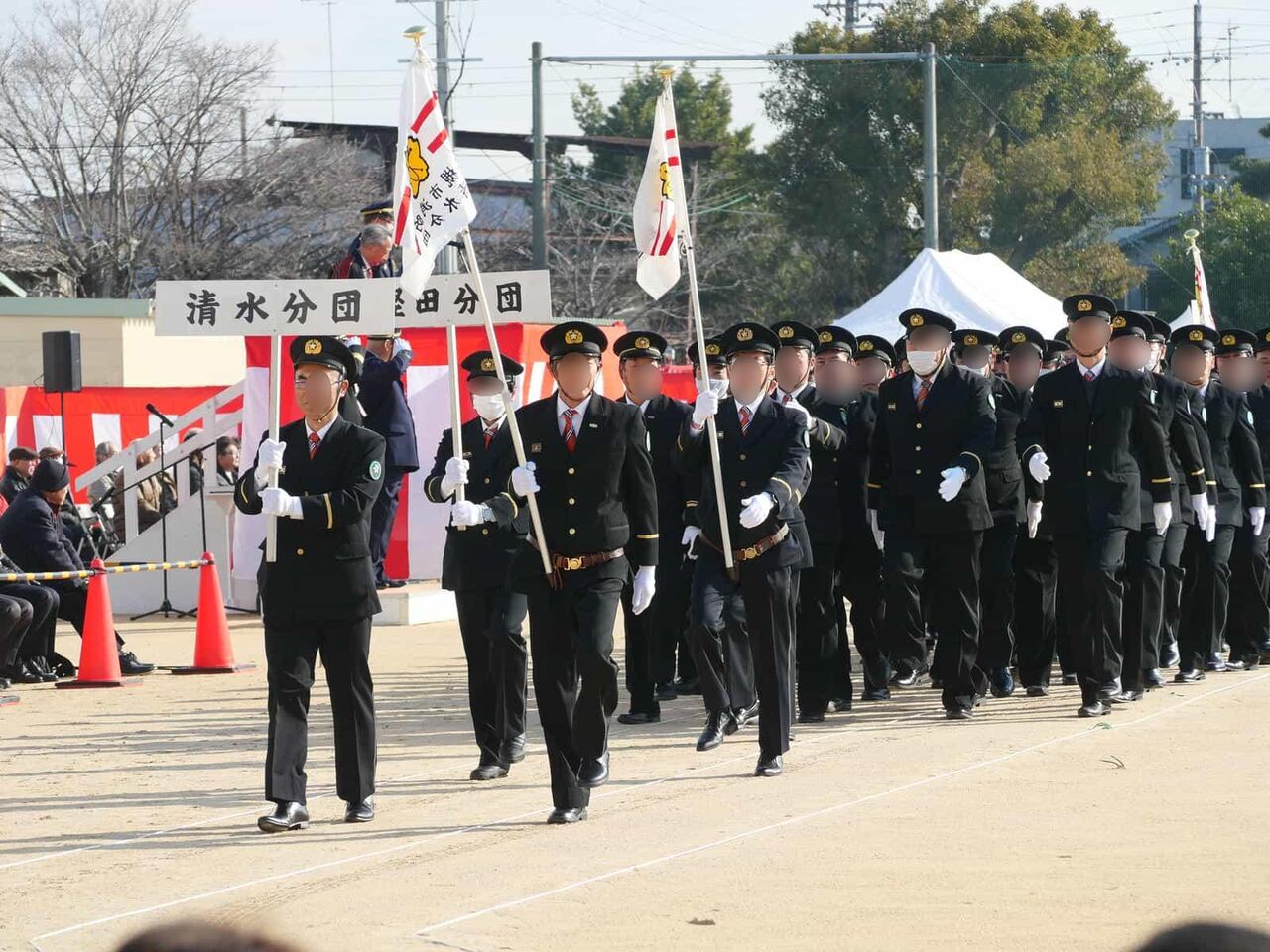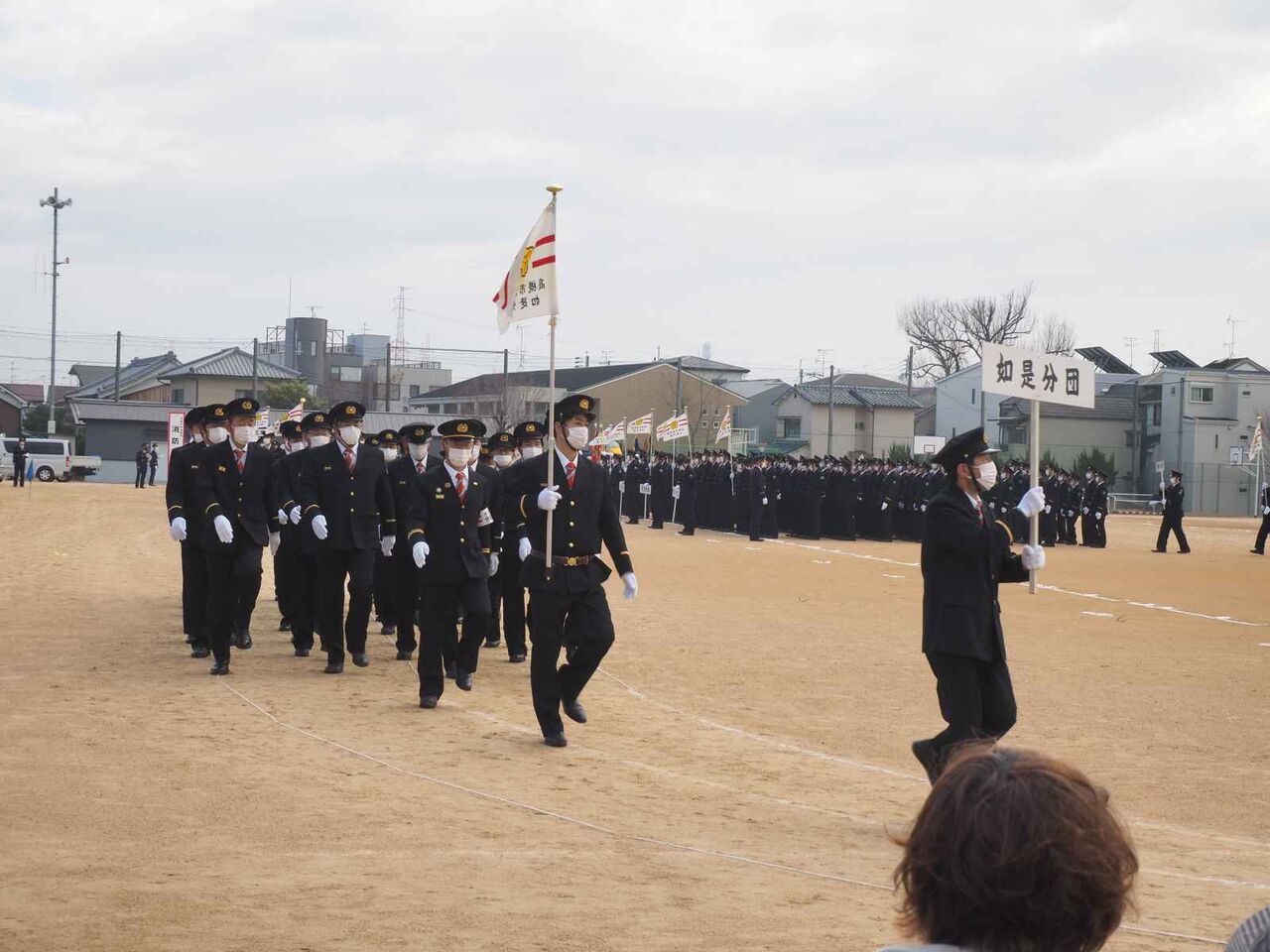 ここから消防団の分団の行進です。如是分団