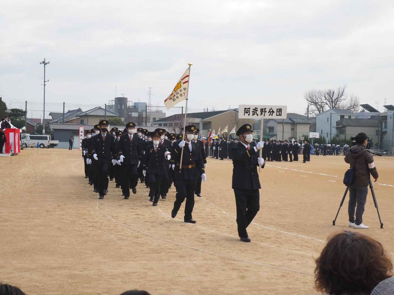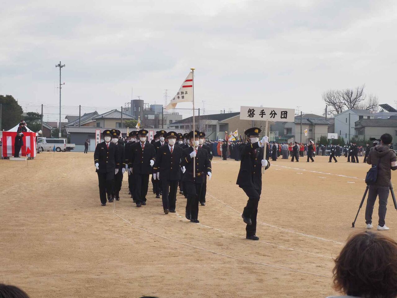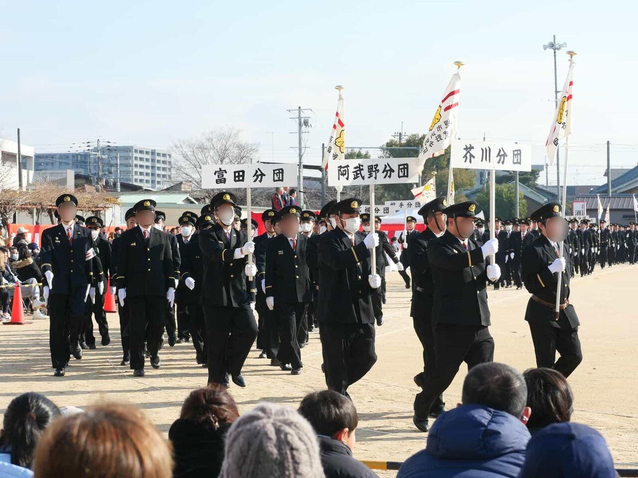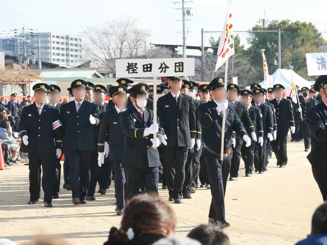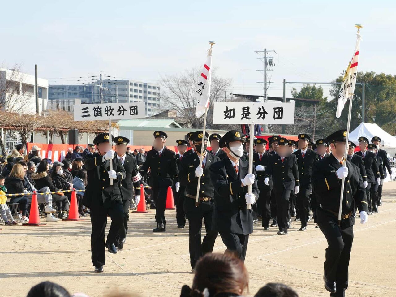 ここから消防団の分団の行進です。如是分団