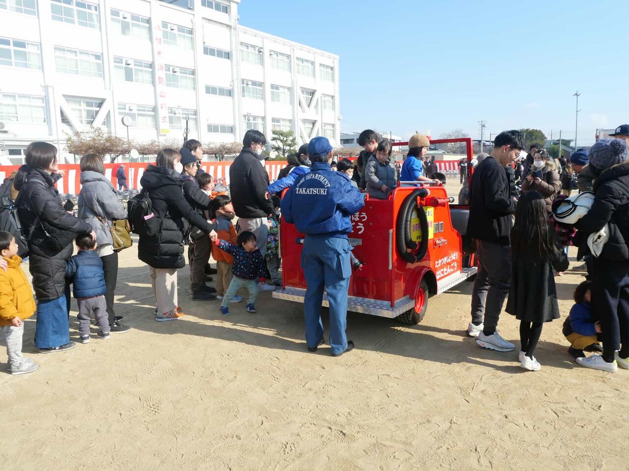 中には消防団員に抱っこされてるお子さんも