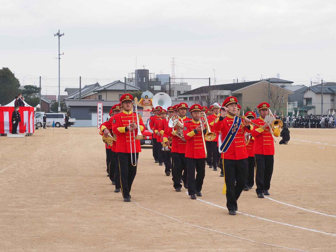 消防音楽隊の後ろには