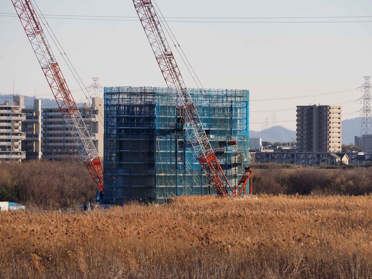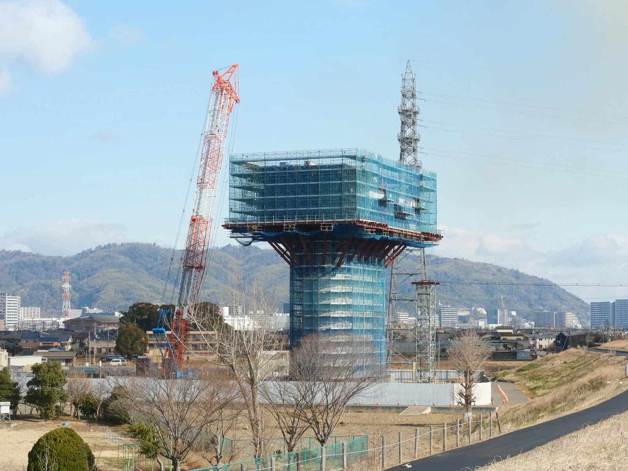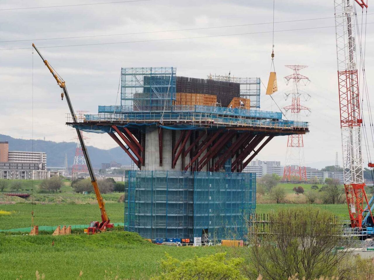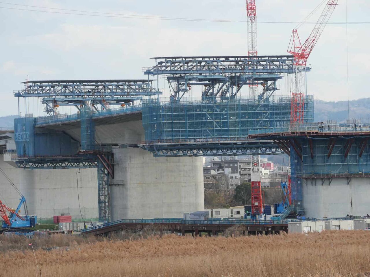 ◆新名神淀川橋工事、上牧の淀川堤防沿い付近の橋脚工事のようすを投稿します(2024年11月30日時点)
